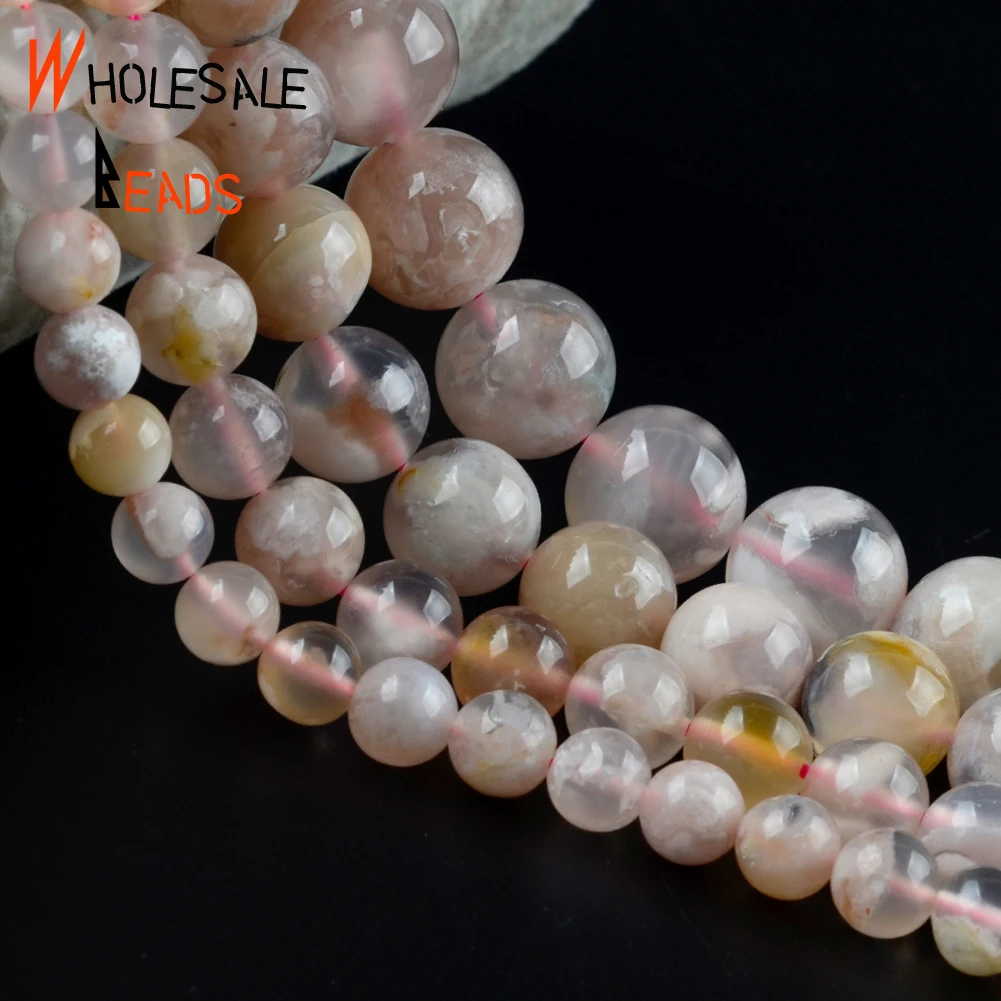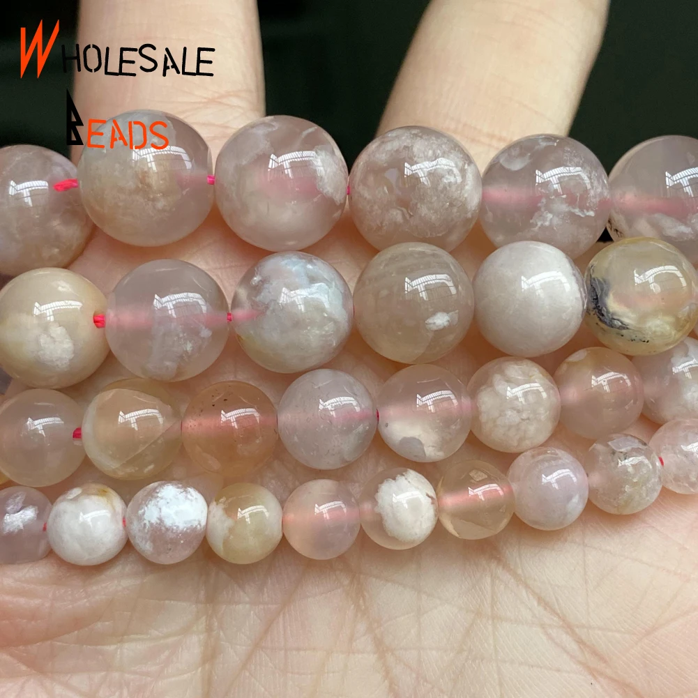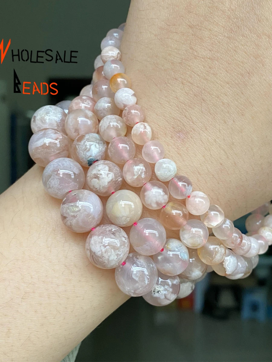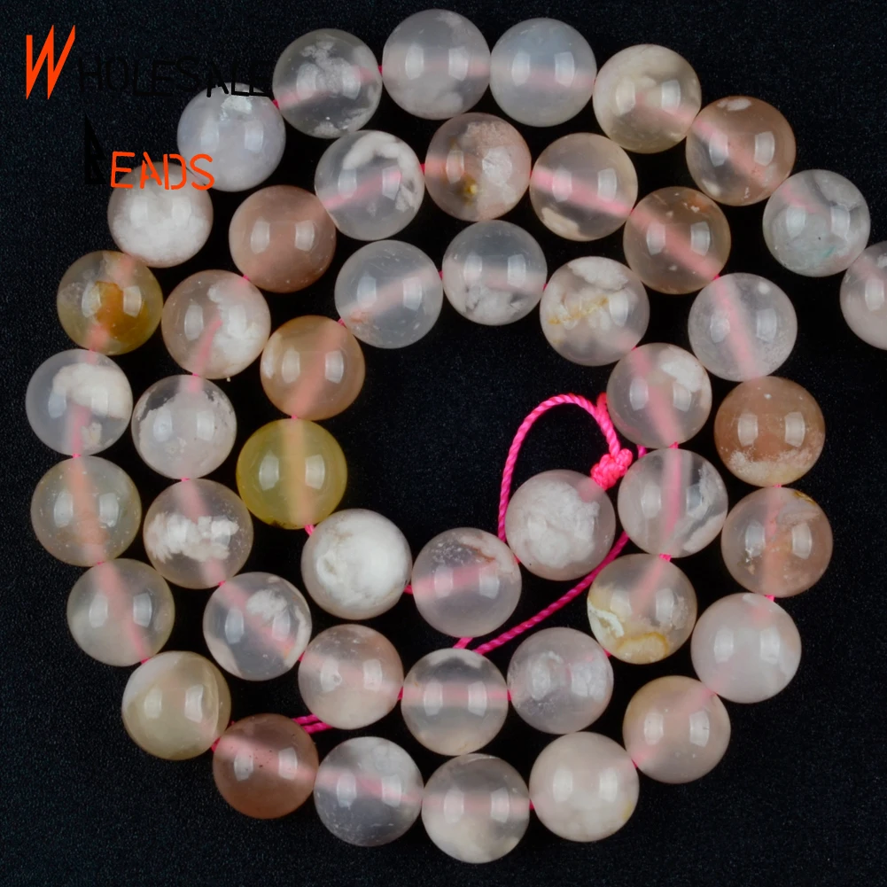 Бусины из натурального камня 681012 мм, розовые Агаты вишни, круглые свободные бусины-разделители, аксессуары для браслетов 15 дюймов