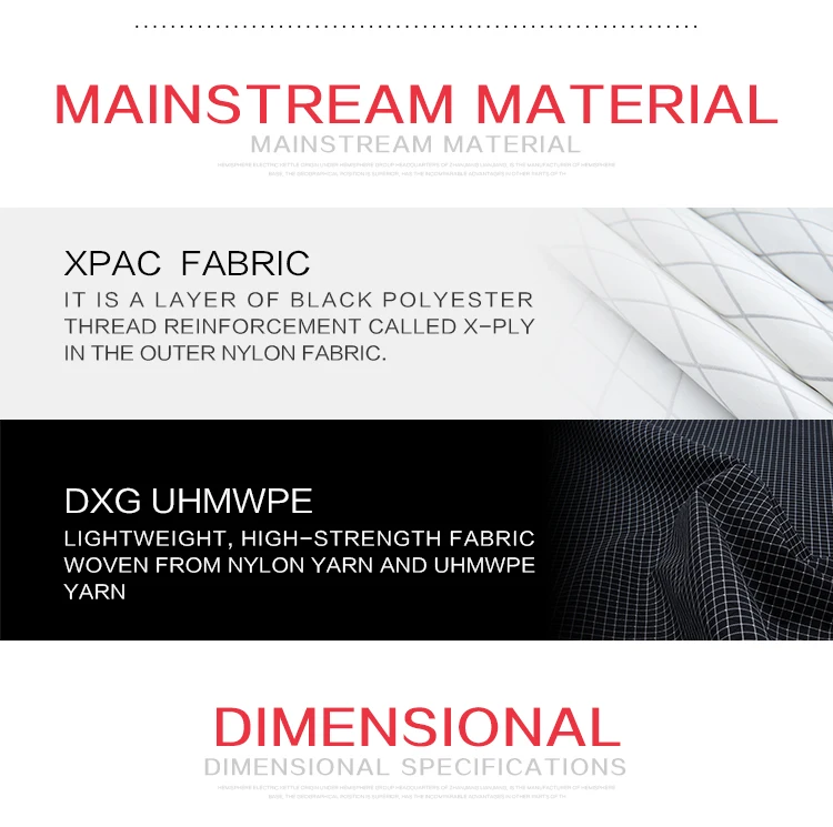 МатериалыВнешняя ткань: X-PAC; СВМПЭ