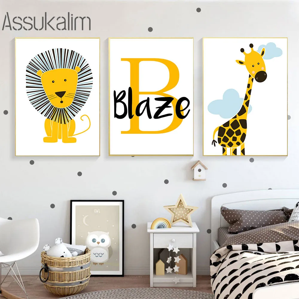 Плакаты на стену с изображением Льва, жирафа, пользовательского имени
