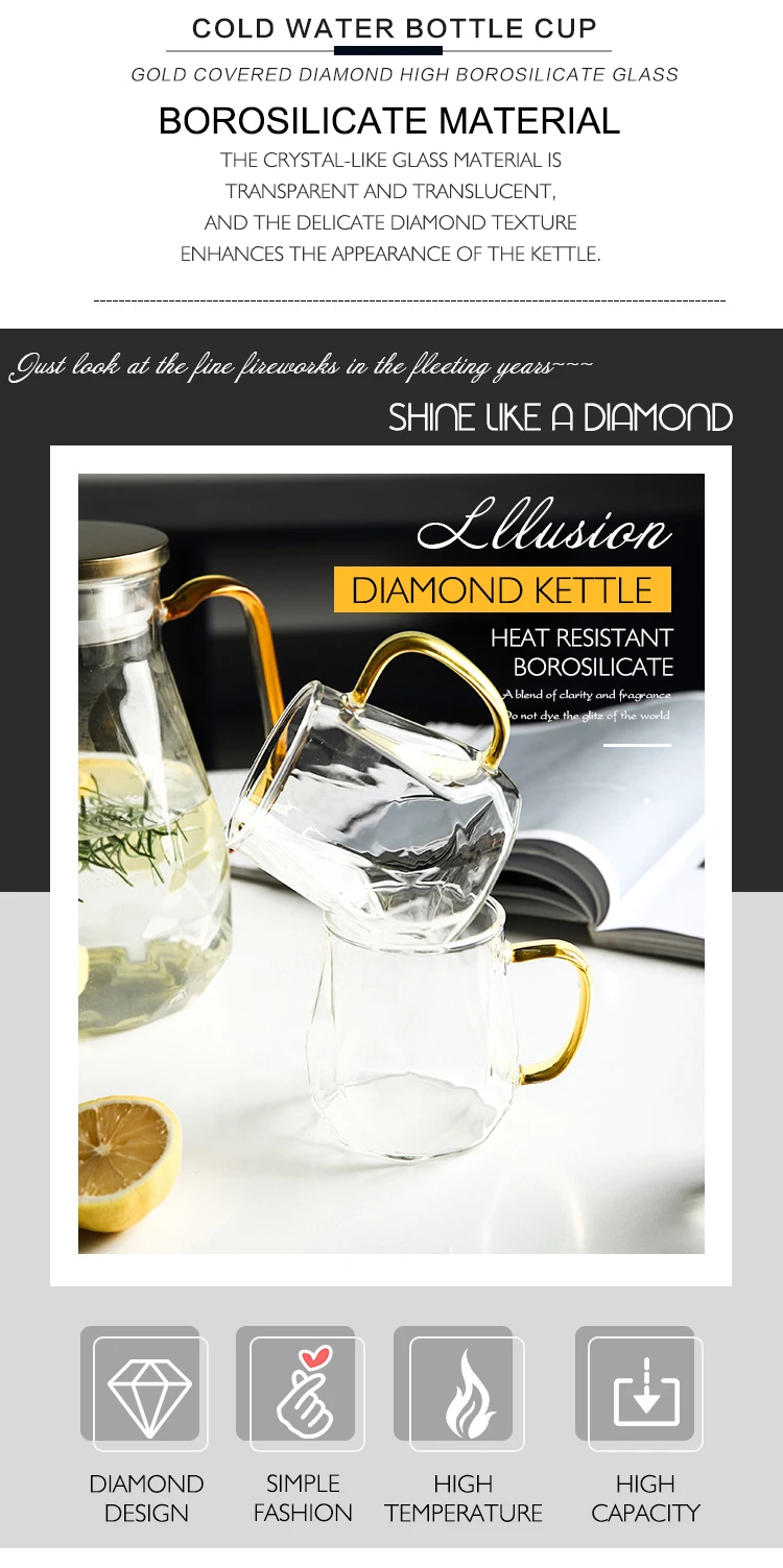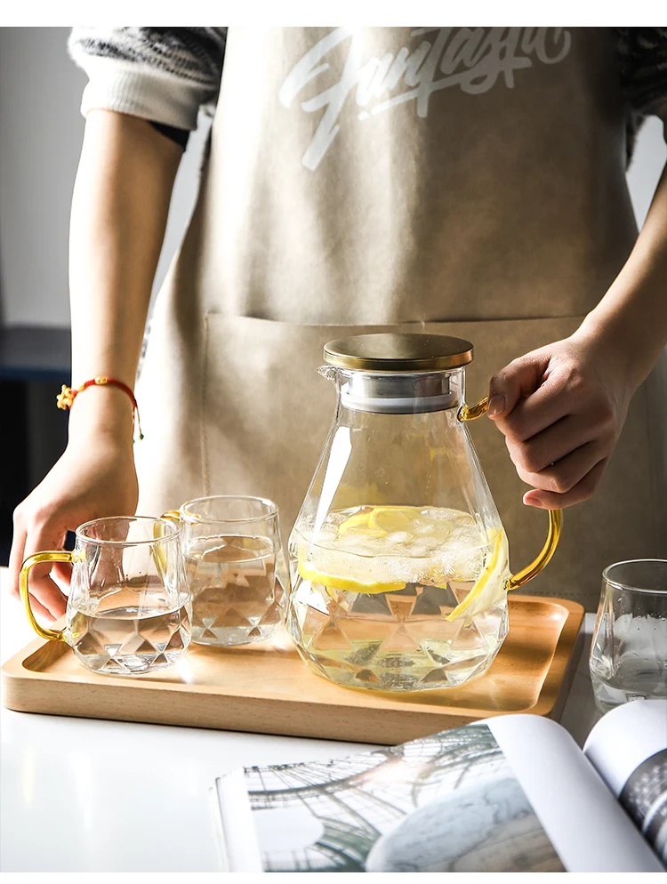 1.8л Алмазный прозрачный стеклянный чайник Горячая и холодная вода термостойкий кофейный чайник деревянная крышка бытовой набор для питья