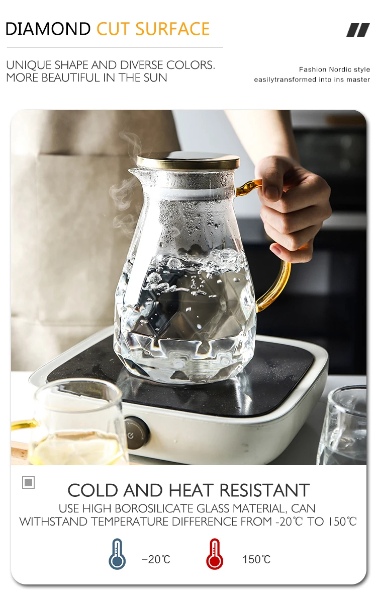 Чайник стеклянный Прозрачный Алмазный для горячей и холодной воды, 1,8 л