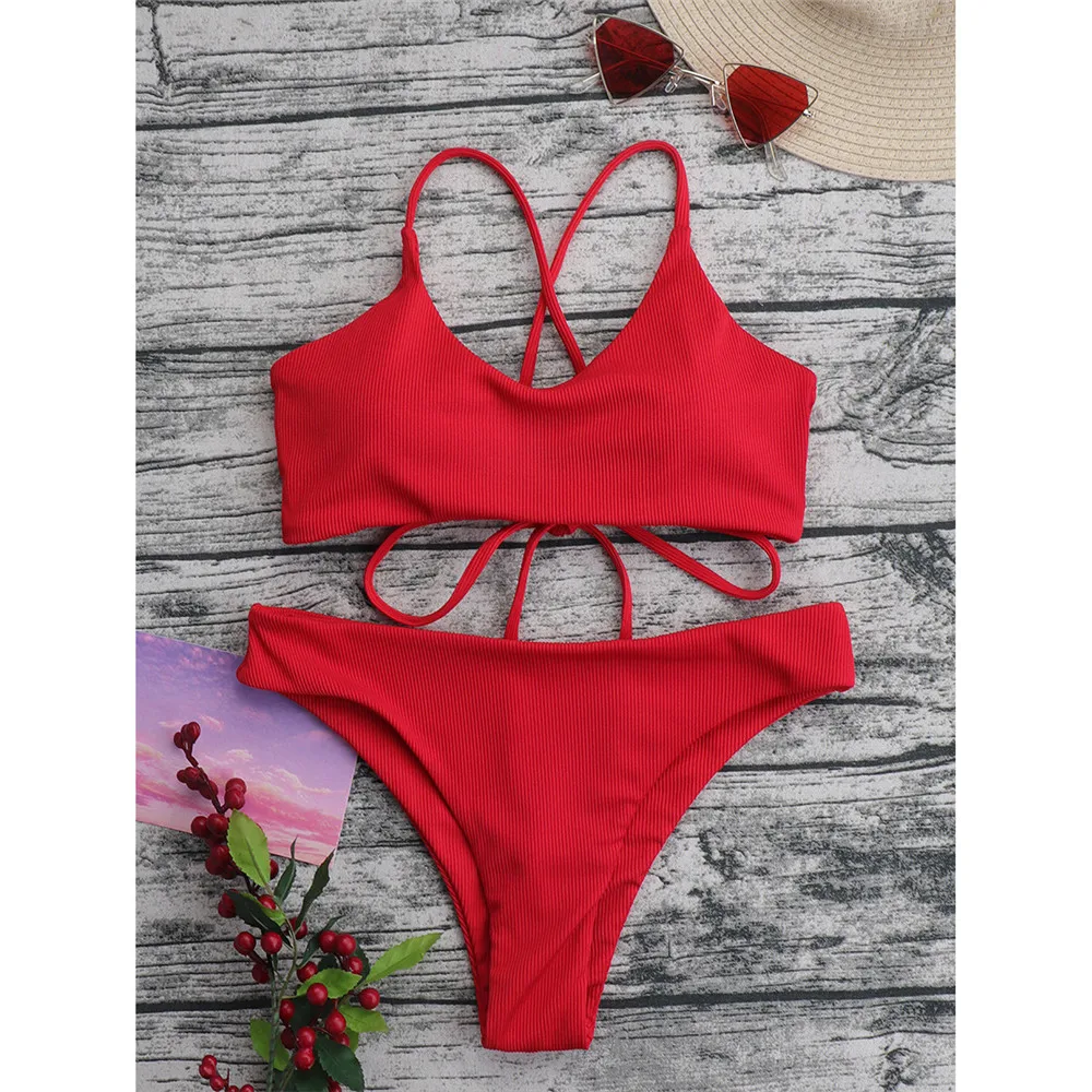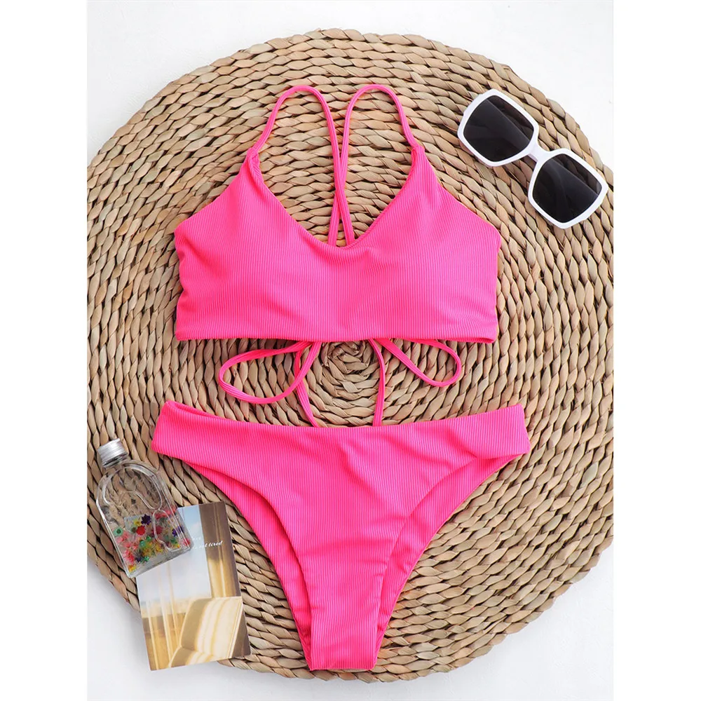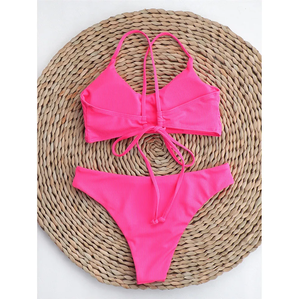 Комплект бикини с завышенной талией для женщин, новинка 2022, однотонный купальник на бретельках, сексуальный женский бразильский купальник, пляжный купальный костюм для девушек