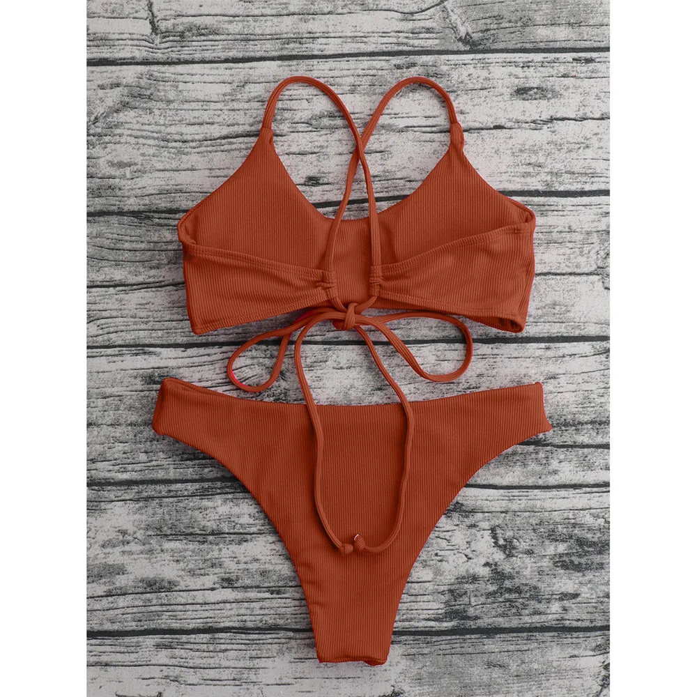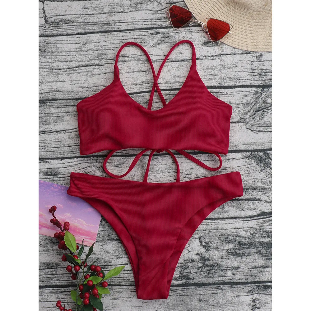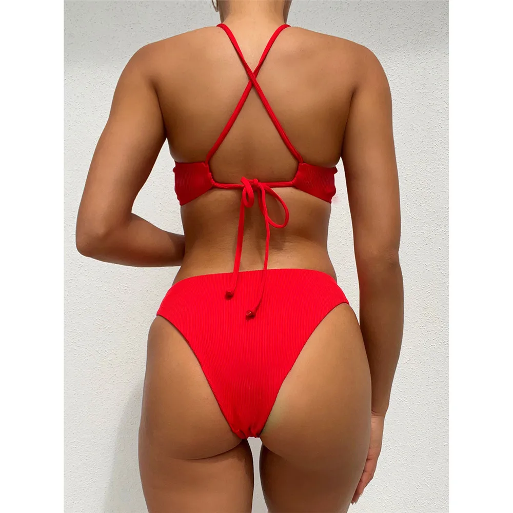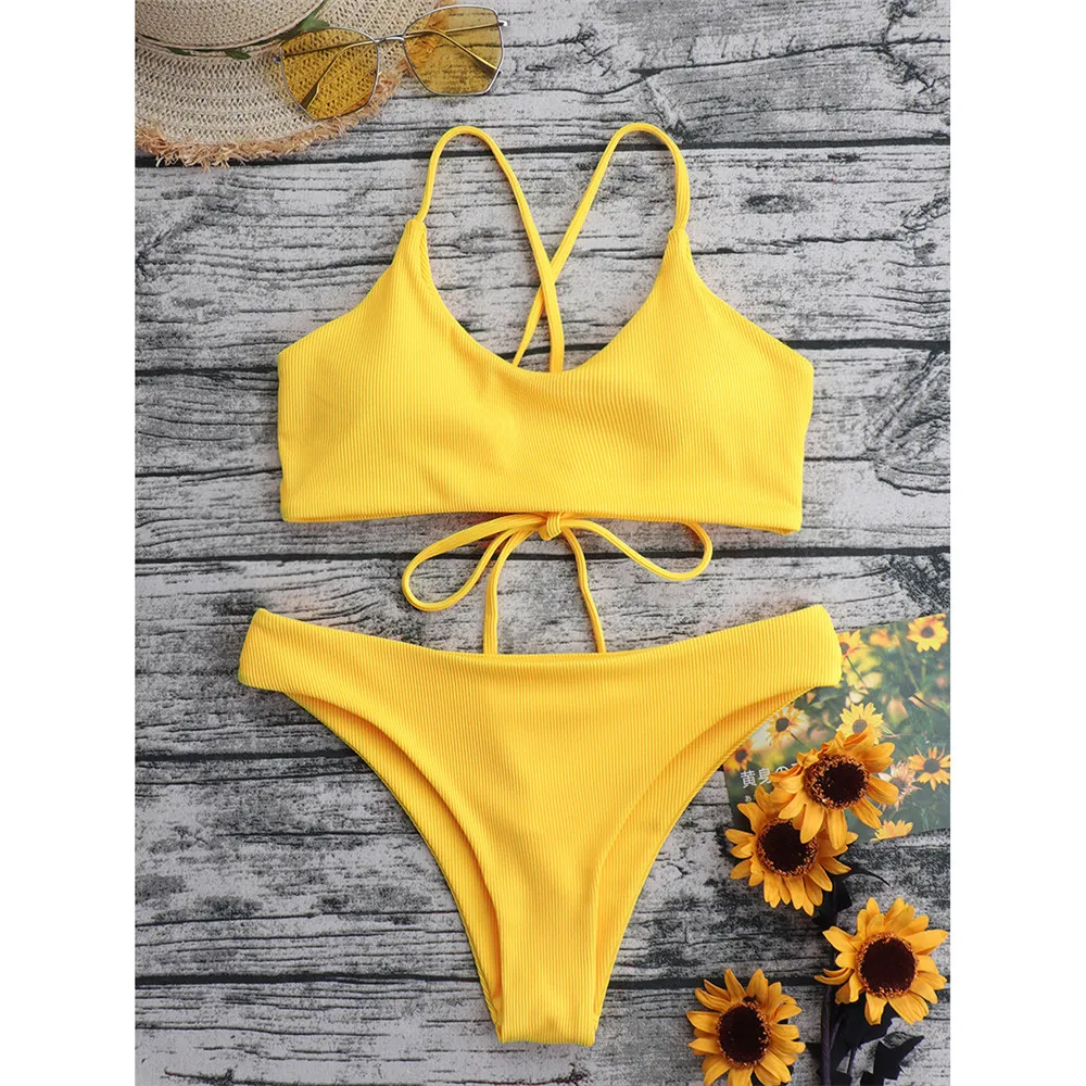 Комплект бикини с завышенной талией для женщин, новинка 2022, однотонный купальник на бретельках, сексуальный женский бразильский купальник, пляжный купальный костюм для девушек