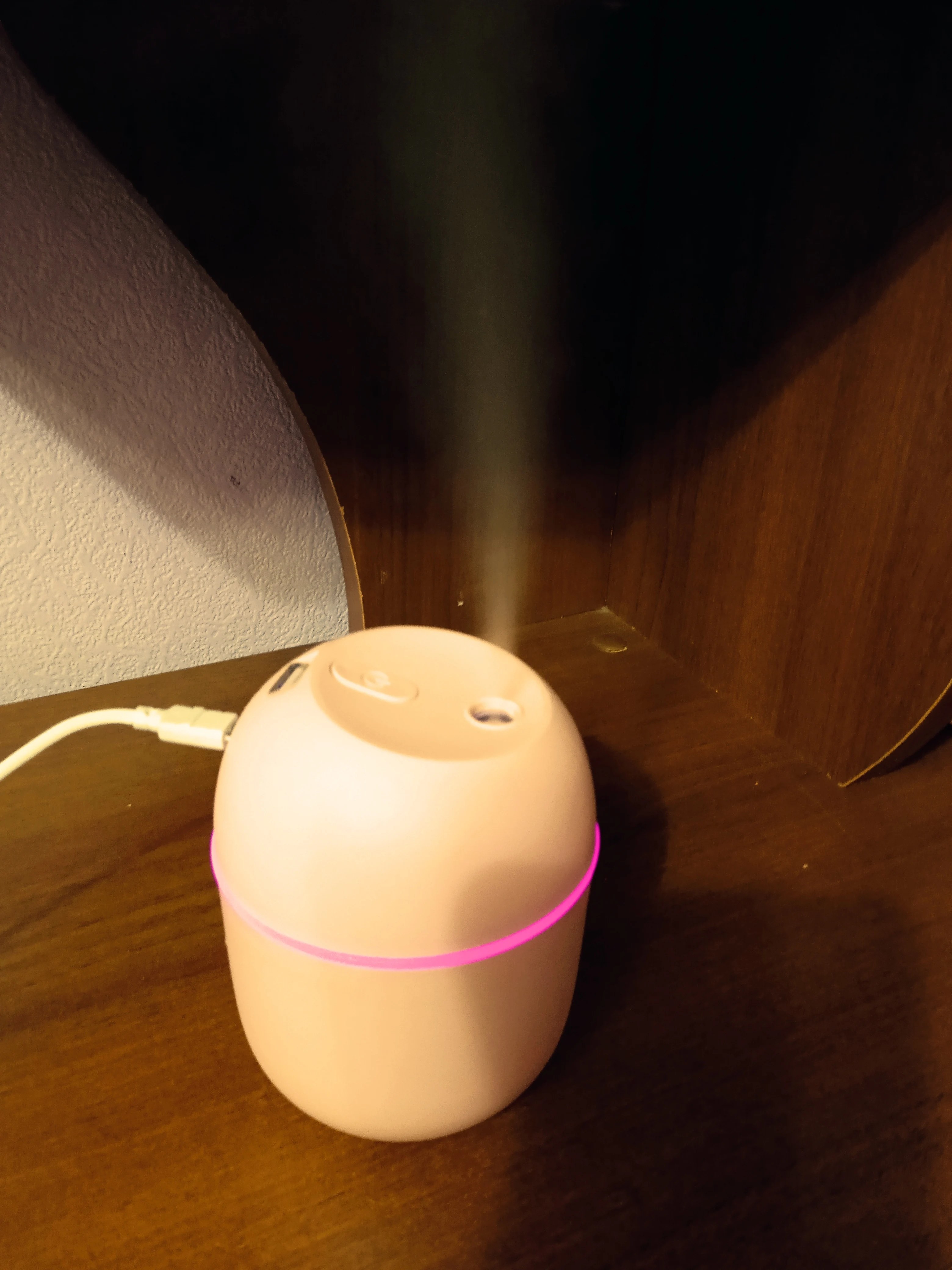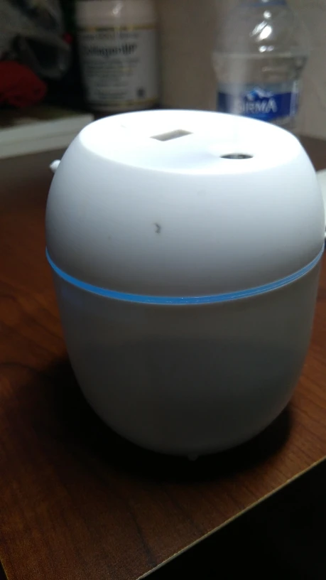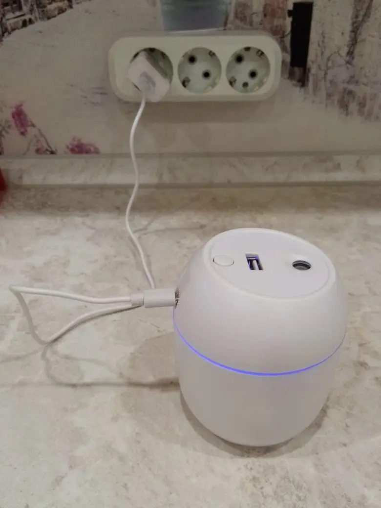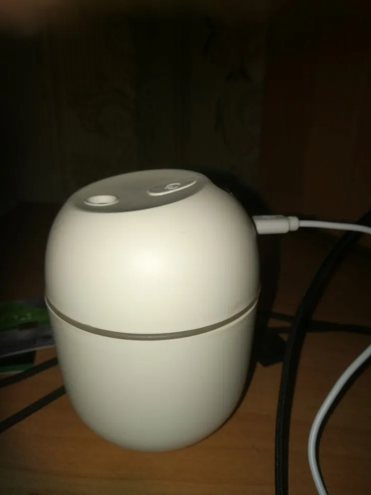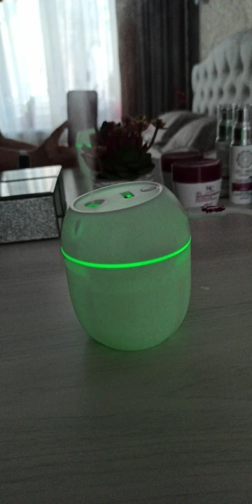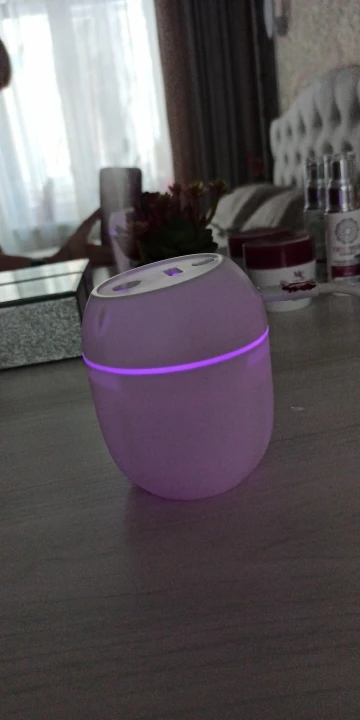 Класный увлажнитель воздуха, мне не удалось отправить видио но на фото это тоже видно немного как у него меняется подсветка это что то. Я ставлю его на прикроватную тумбочку включаю на импульс чтоб не постоянно а через малый промежуток включалось увлажнение и мне такой малышки хватает на всю ночь. Очень довольна своей покупкой. Спасибо большое продавцу за быструю доставку 3 недели в пятерочку.