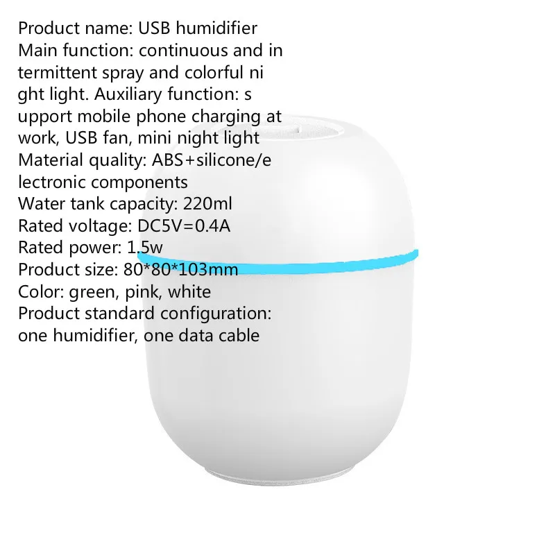 Заказали 17 декабря, в Минске 11 января. Трек отслеживался, доставка бесплатная. Если заказывать более двух единиц, доставка платная, причем гораздо больше стоимости товара, пришлось оформлять разные заказы. За счёт купонов Ali и продавца получилась солидная скидка. Каждый увлажнитель в заводской картонной упаковке. Все дошли без повреждения, рабочие. В комплекте: сам увлажнитель, кабель microUSB длина 50 см, вкладыш-инструкция на английском и китайском. Заказывали белого цвета, по факту - бежевый. Имеется режим непрерывной подачи, и прерывистый (3 секунды подача, 3 сек. пауза), переключаются последовательным нажатием кнопки включения. Имеется подсветка - полоска вокруг, отключается длительным нажатием кнопки. Если приключении не пошла подача, необходимо намочить внутренний стержень. Распыляет хорошо, но эффект не очень заметен.