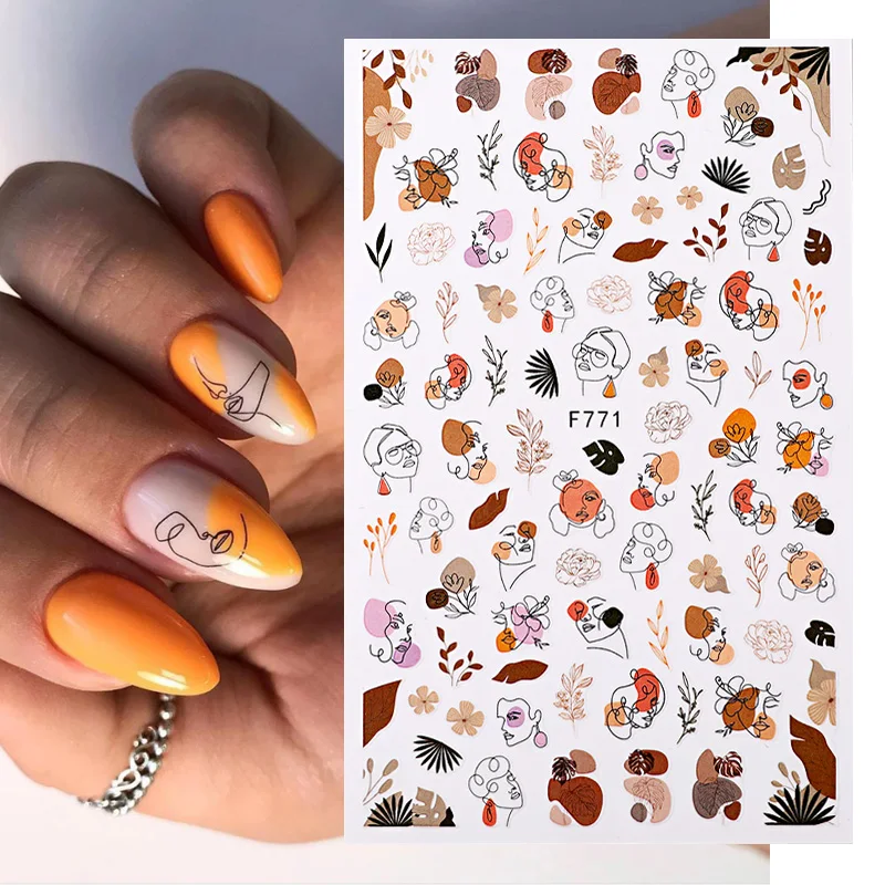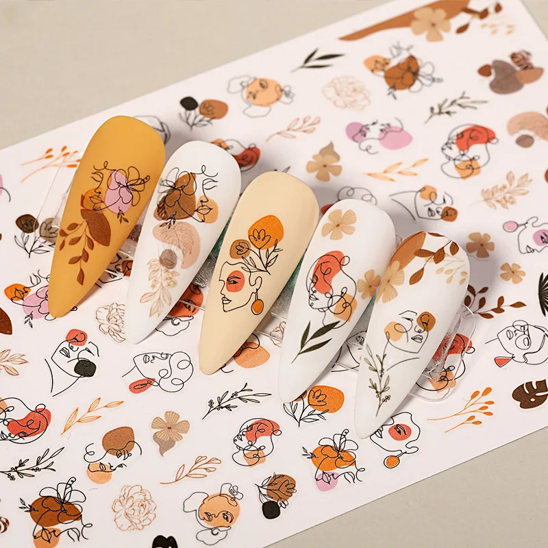 3D наклейки для ногтей, абстрактный Рисунок лица, лето-осень, леди, цветок, листья, слайдеры, наклейки для ногтей, украшения для маникюра, 1 шт.