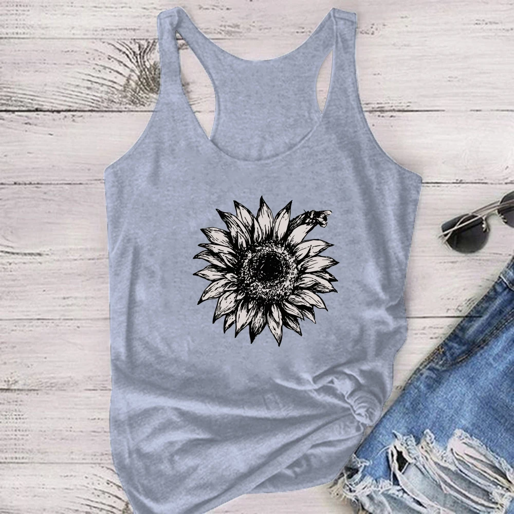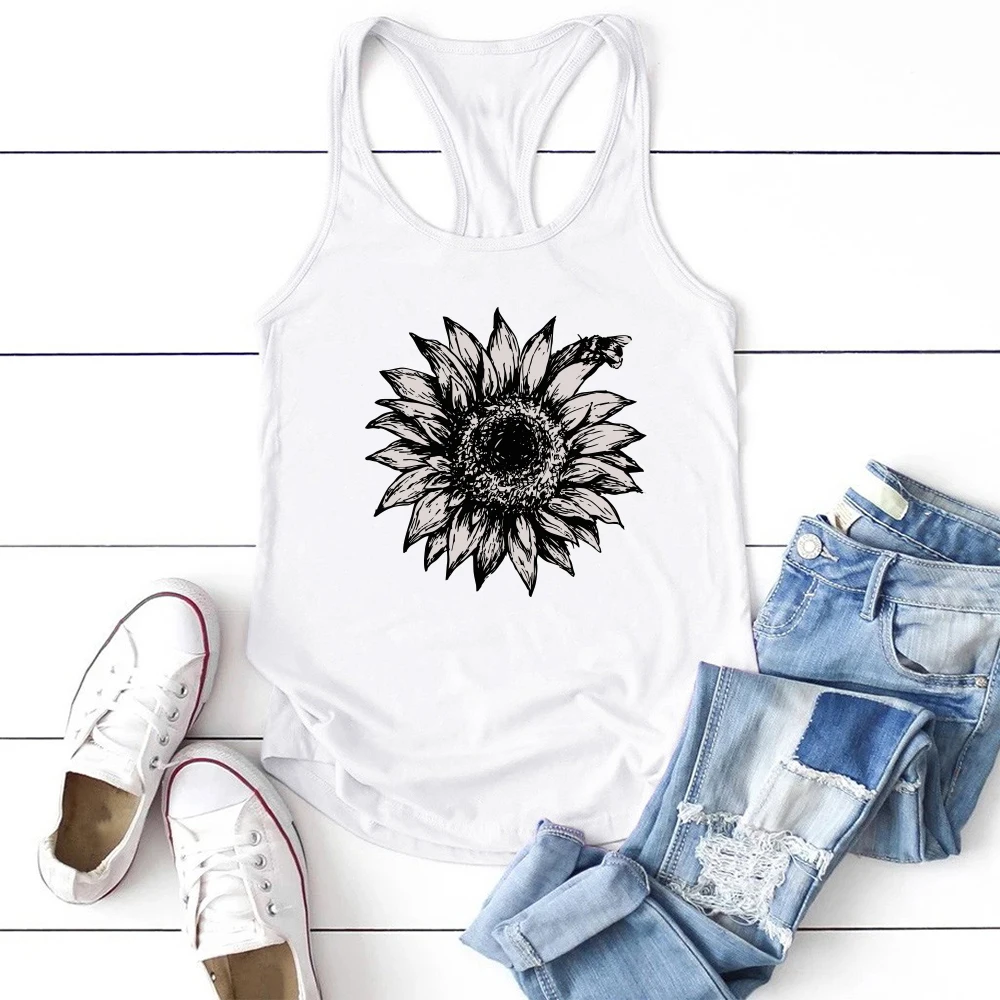 2021 г., модные женские майки, винтажные летние майки, принтом в виде цветов подсолнуха г., женский жилет без рукавов, Camiseta Tirantes Mujer