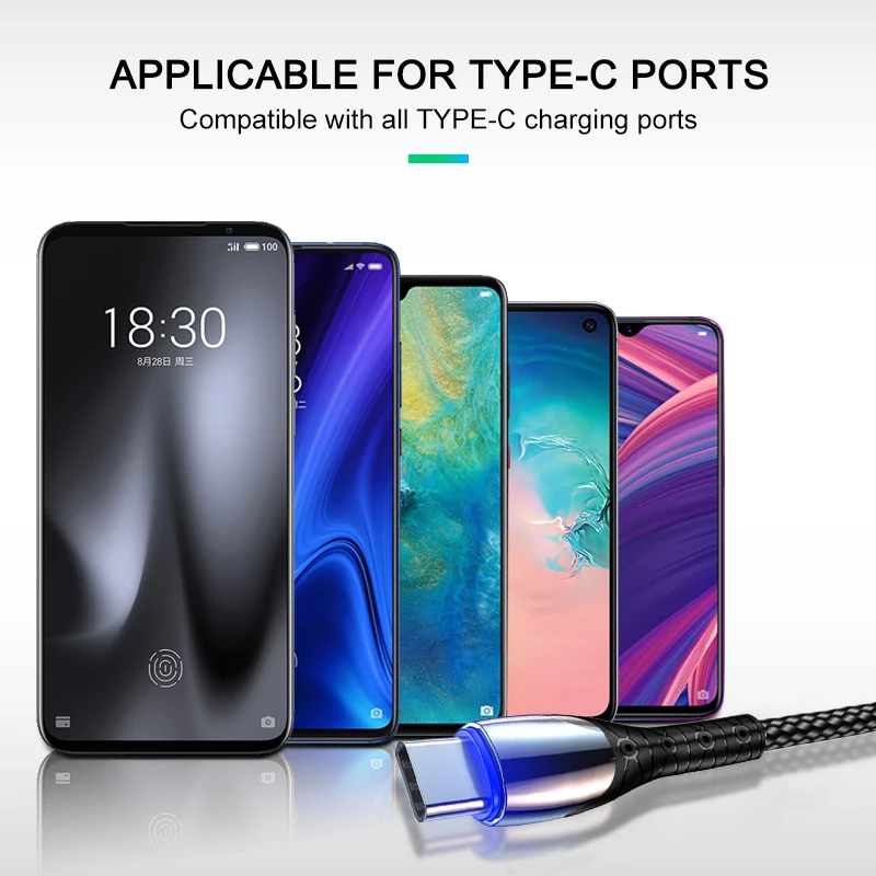 Светящееся зарядное устройство Type-C, USB 3,0, кабель для передачи...