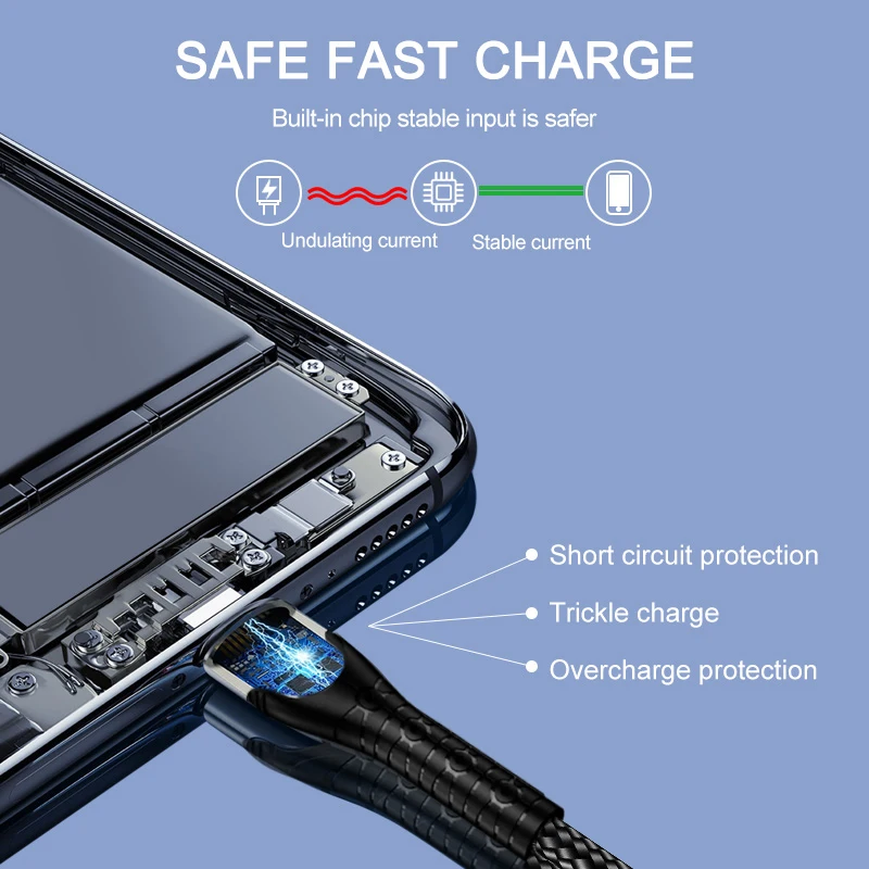 Зарядный кабель USB 3,0, светодиодный кабель для быстрой зарядки и ...