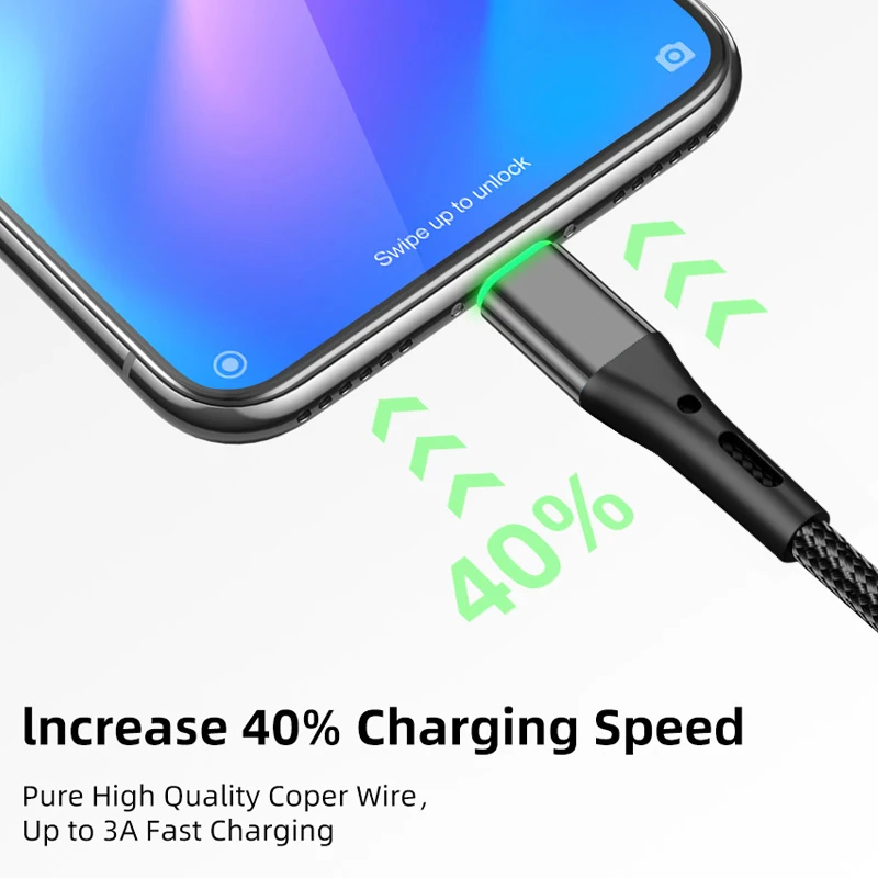 Зарядный кабель Baseus со светодиодной подсветкой, Micro USB, 3 А
