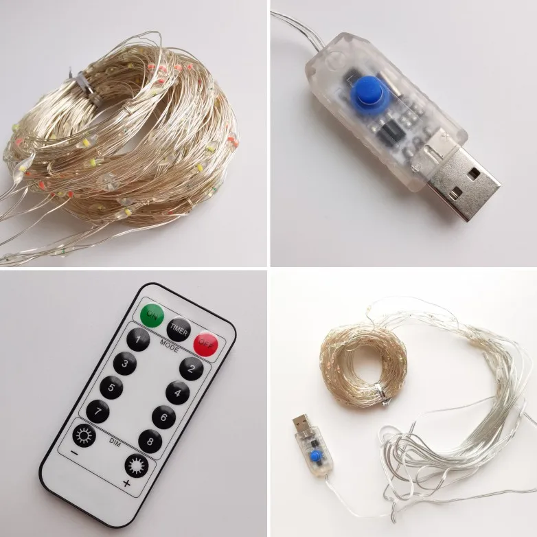 классная гирлянда)) смотрится очень круто! посылка дошла быстро, в комплекте пульт (батарейки не было). работает от usb, на адаптере тоже есть переключатель режимов. светит ярко и мягко. вариант гирлянды на леске с диодами на окне смотрится незаметно и воздушно. важно ещё сам провод к розетке достаточно длинный, на стандартную высоту розетки хватило (но она у меня у окна). все понравилось, смотрится очень круто)