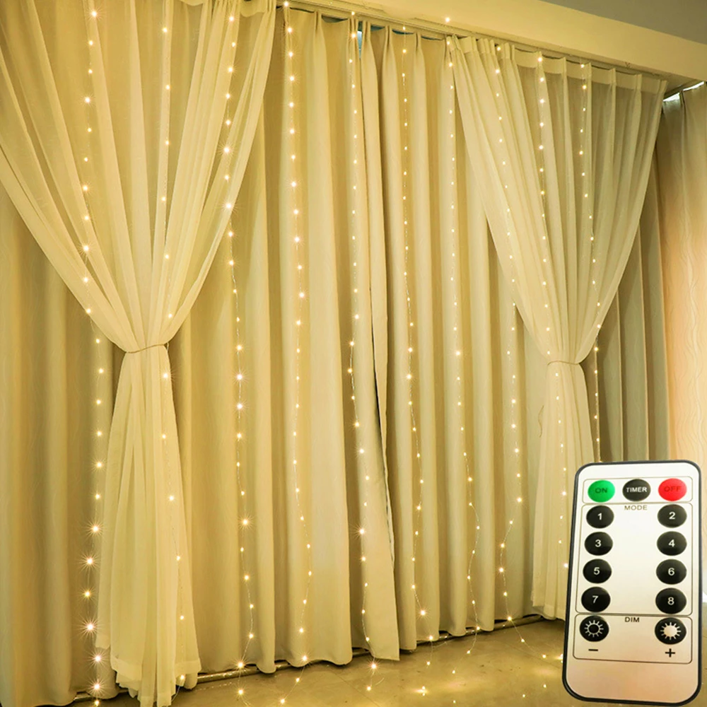 СВЕТОДИОДНАЯ Гирлянда-занавеска для комнаты, сада, свадьбы, украшение с питанием от USB, гирлянда с дистанционным управлением, праздничное сказочное рождественское освещение, 3 м