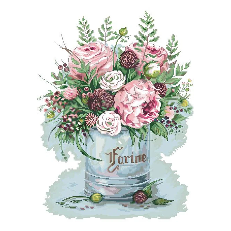 Высокое качество СчетныйНабор для вышивки крестиком Розовые розы цветы Букет Ваза панна