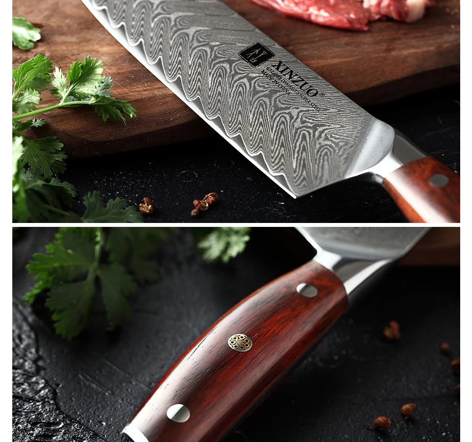 XINZUO 7-дюймовый кухонный нож сантоку, Дамасские кухонные ножи из ...