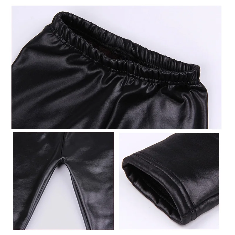 Леггинсы для маленьких девочек узкие брюки-карандаш штаны из искусственной кожи осенне-зимние детские леггинсы теплые брюки эластичная детская одежда