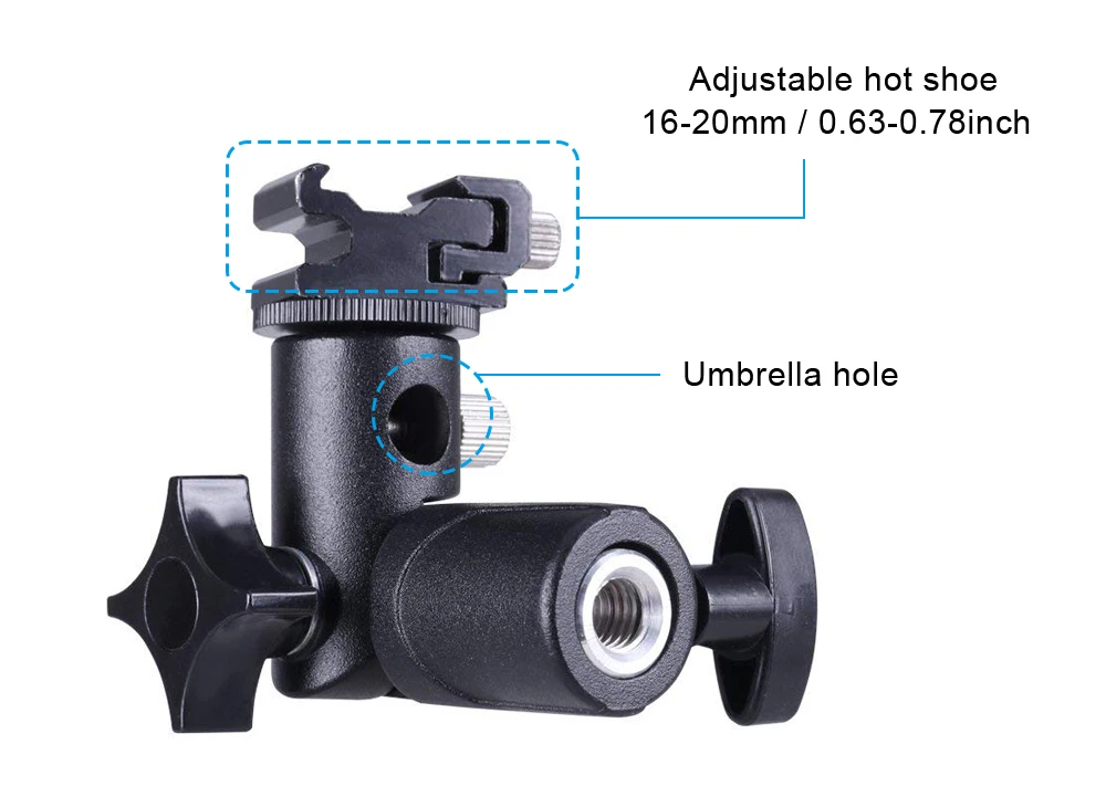 Описание: кронштейн для горячего башмака с легким регулируемым основанием, это универсальный кронштейн для вспышки для студийного использования. Поставляется с винтовым адаптером 1/4-3/8 дюйма, чтобы прикрепить его к штативу или подставке на светильник или к любой установке камеры с резьбой 1/4 "-20 или 3/8"-16. Универсальное металлическое Крепление для холодной обуви сверху для крепления вспышки на кронштейн. Работа на мониторе, кольцевой светильник, вспышка Nikon Canon speedlite, триггер, magic arm,mic и любые аксессуары, которые имеют тип обуви камеры. Легкая регулировка. Этот кронштейн для вспышки имеет регулировку по вертикали на 180 ° и по горизонтали на 360 °, что позволяет расположить зонтик и вспышку под разным углом. Отверстие с запорным винтом посередине специально разработано для удержания зонта. Спецификация: Цвет: черный Материал: металл и АБС-пластик Размер: прибл. 11.5x2.5 см/4,52x0,98 дюйма Резьбовое крепление: 1/4 "-20 & 3/8"-16 Примечание: Не совместим с Sony Minolta вспышки и другие аксессуары не прилагаются посылка включает в себя: 1 * Кронштейн для вспышки типа E