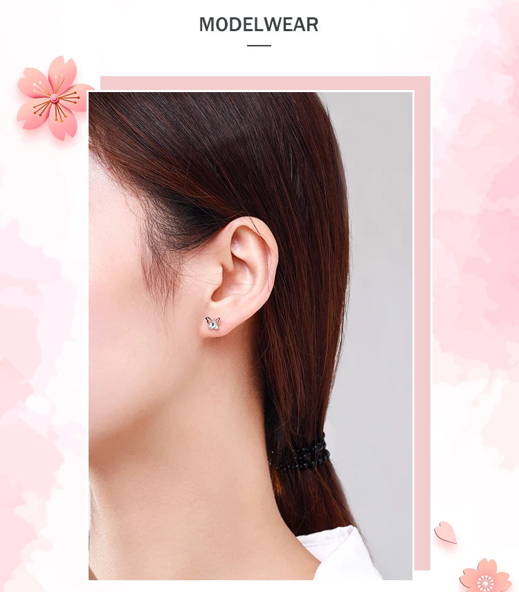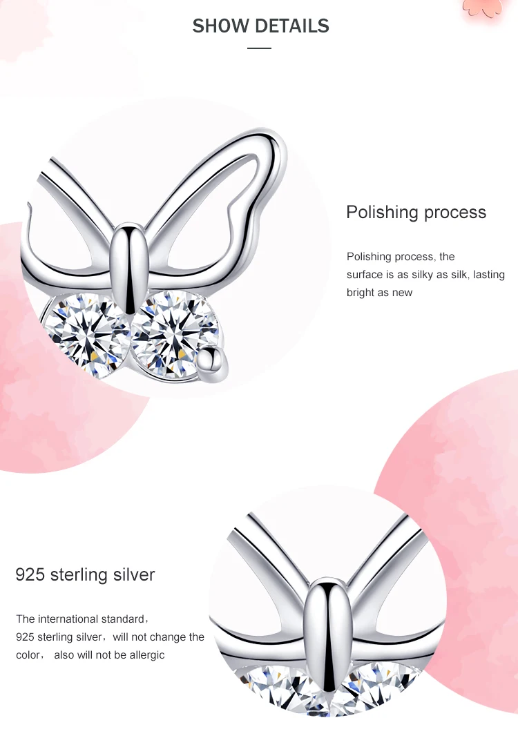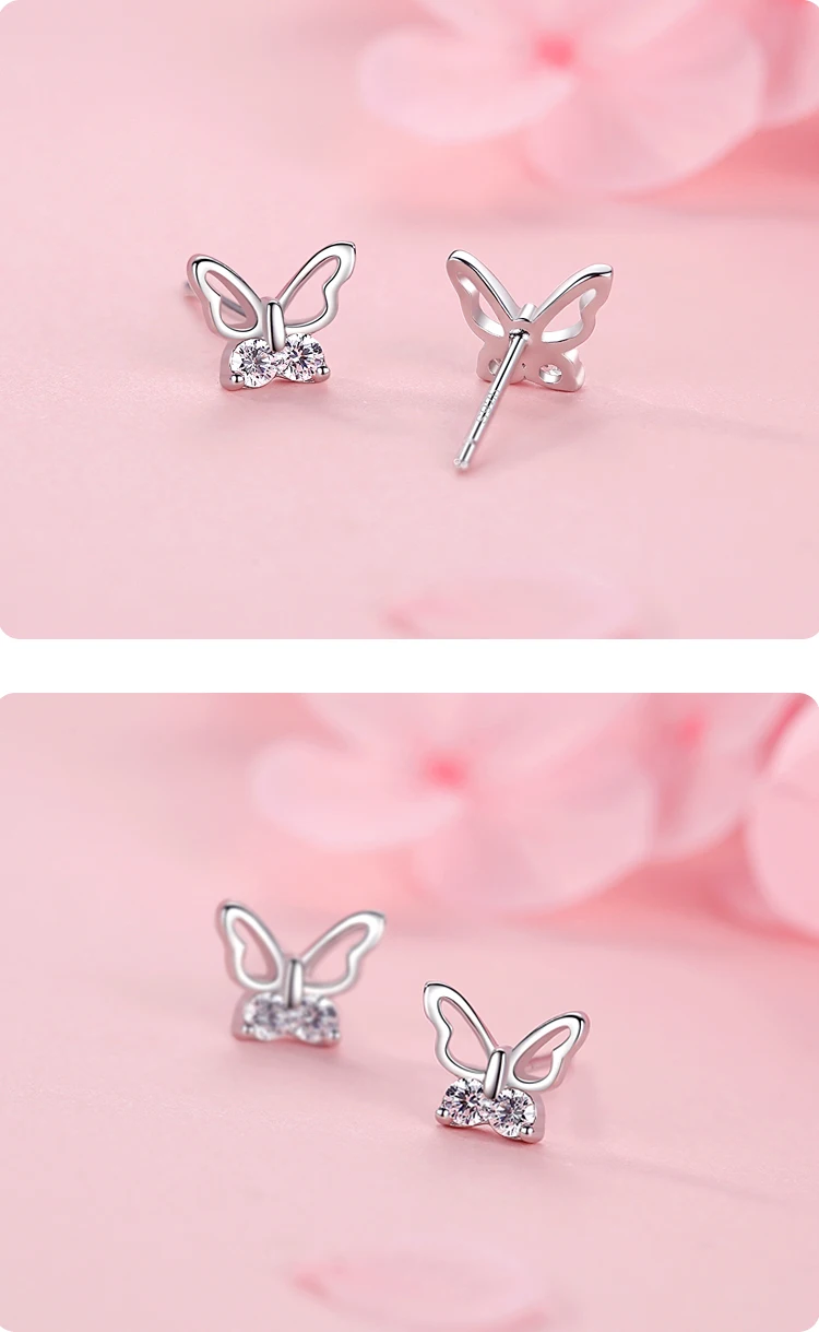 Женские серьги-гвоздики из серебра 925 пробы с бабочкой