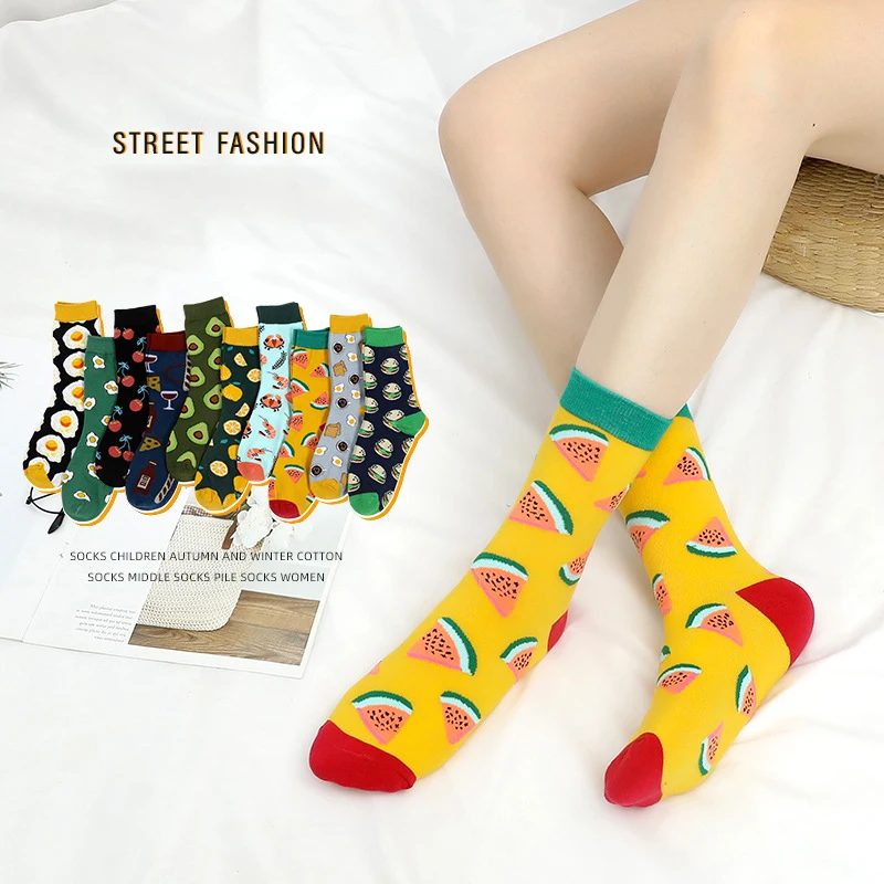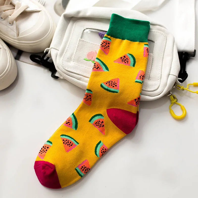 Сладкая еда авокадо носки милые забавные женские Арбуз Лимон вишня ананас креветки дивертидос жаккардовый дизайн Sokken Femme