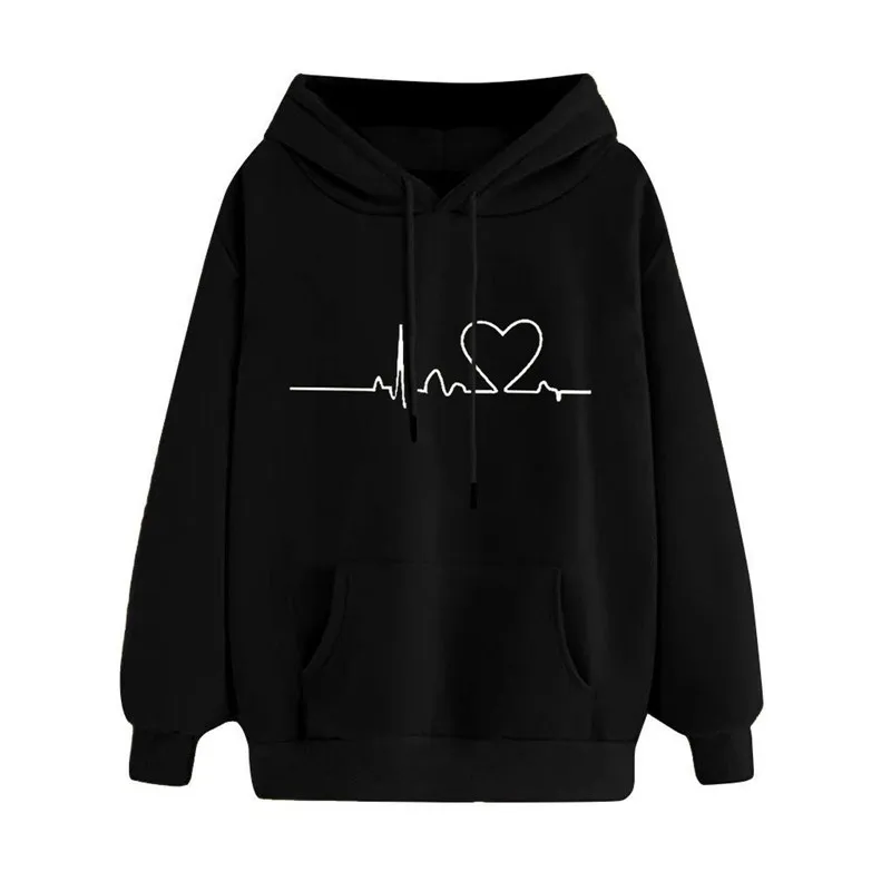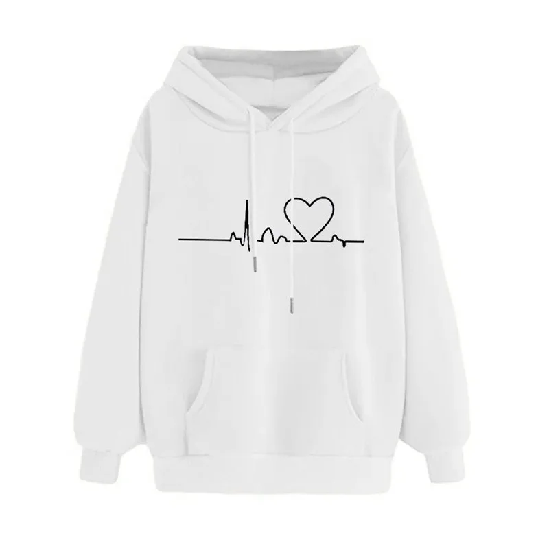 Женская толстовка с рисунком сердцебиения, Свободная Толстовка С Ка...