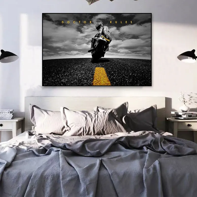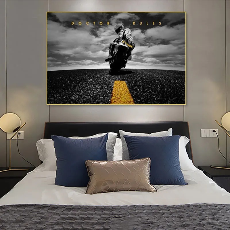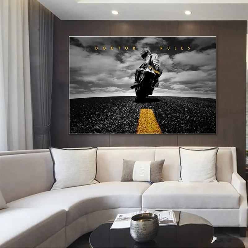Черно-белый мотоцикл Gp постер и печать мотоциклист спорт холст живопись Гостиная Настенная картина Декор для дома