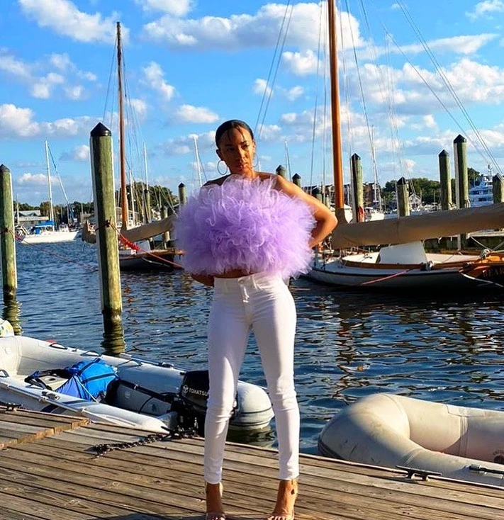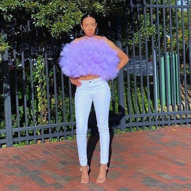 Повседневная Фиолетовая рубашка, летняя рубашка без бретелек, рубашка из тюля с оборками, на день рождения, выпускной, на заказ, большие размеры