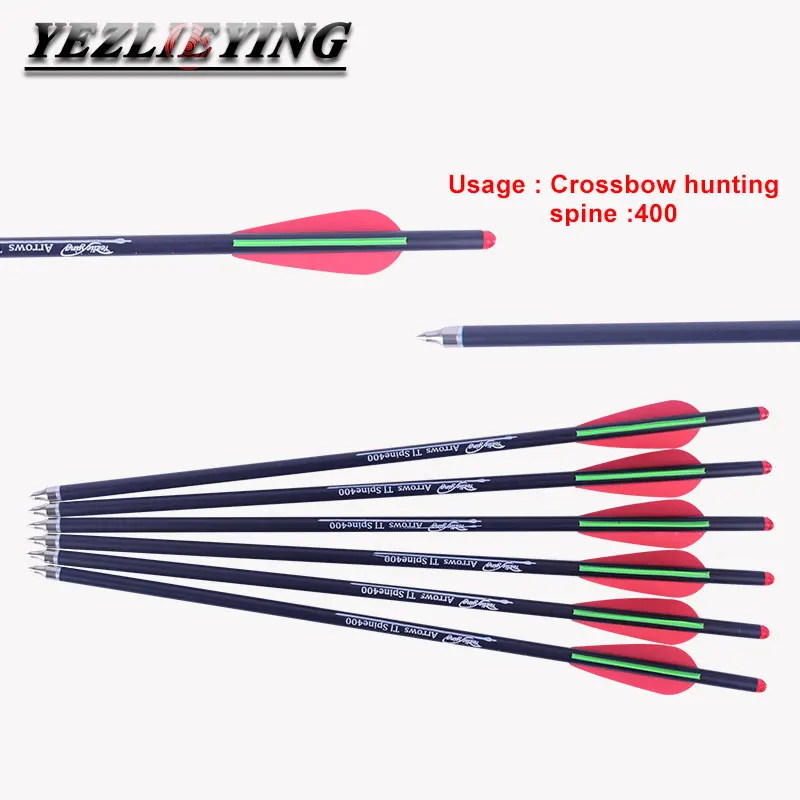 6 шт 16/17/18/20/22 дюймов позвоночника 400 Охотный арбалет с употреблением желтого зубчика-Карбоновые стрелы для лука и стрел для стрельбы из лука охота