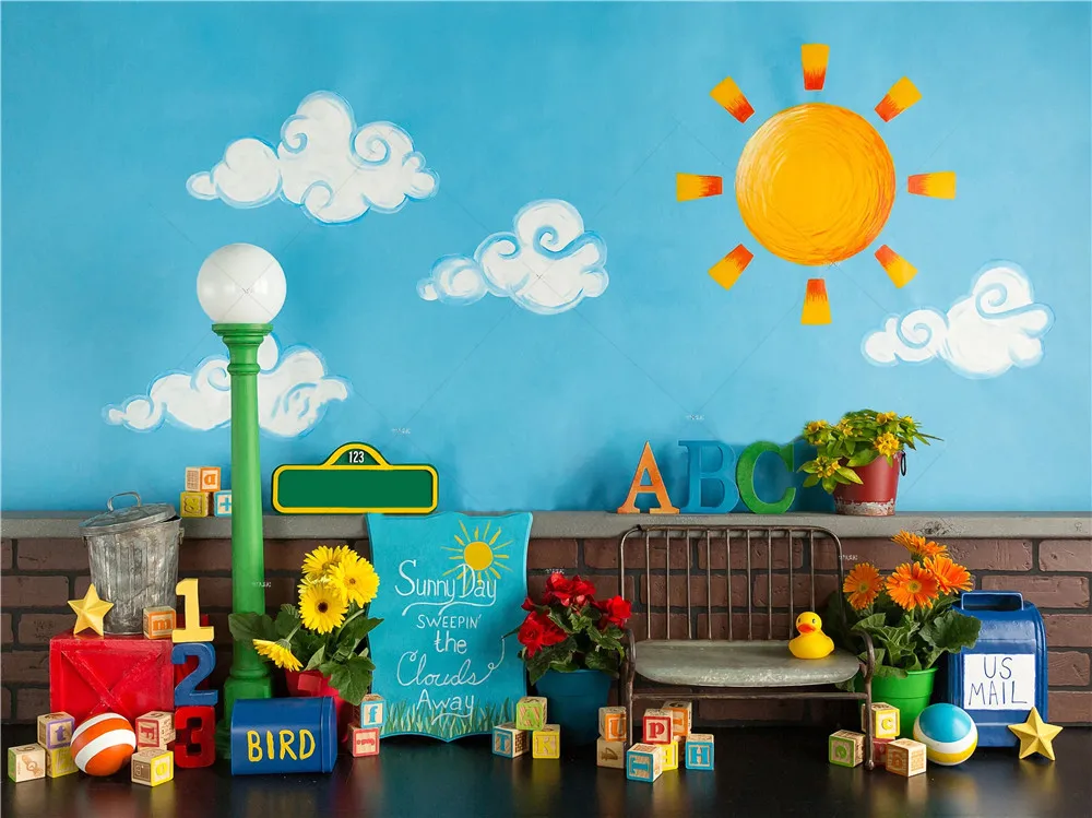 Фон для фотосъемки новорожденных с изображением улицы Сезам, вечеринки по случаю Дня Рождения, декоративный баннер