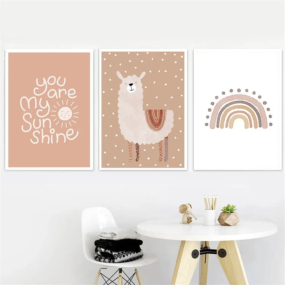 Абстрактная печать You Are My Sunshine художественная работа с цитатами Alpaca детская Картина на холсте постер с радугой скандинавские настенные картины декор детской комнаты