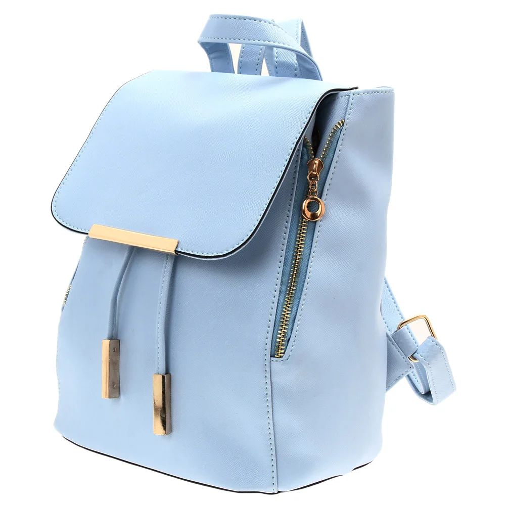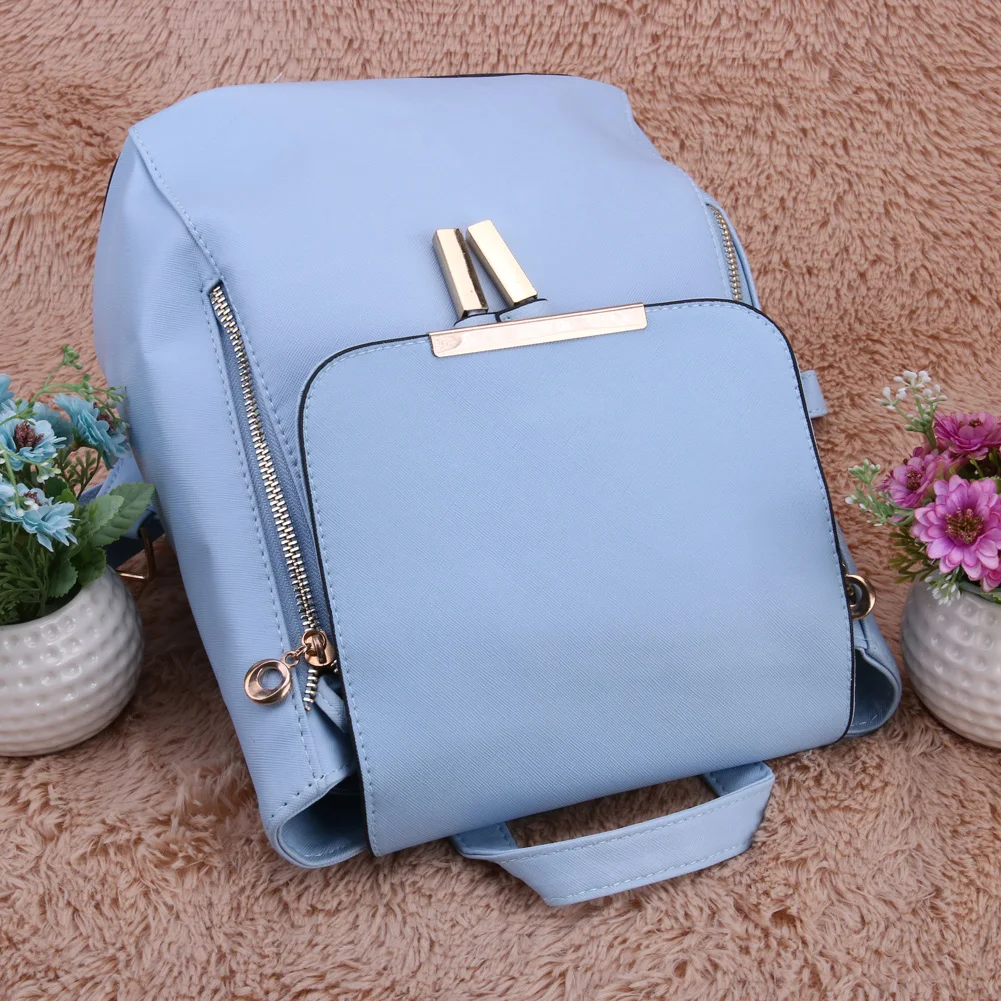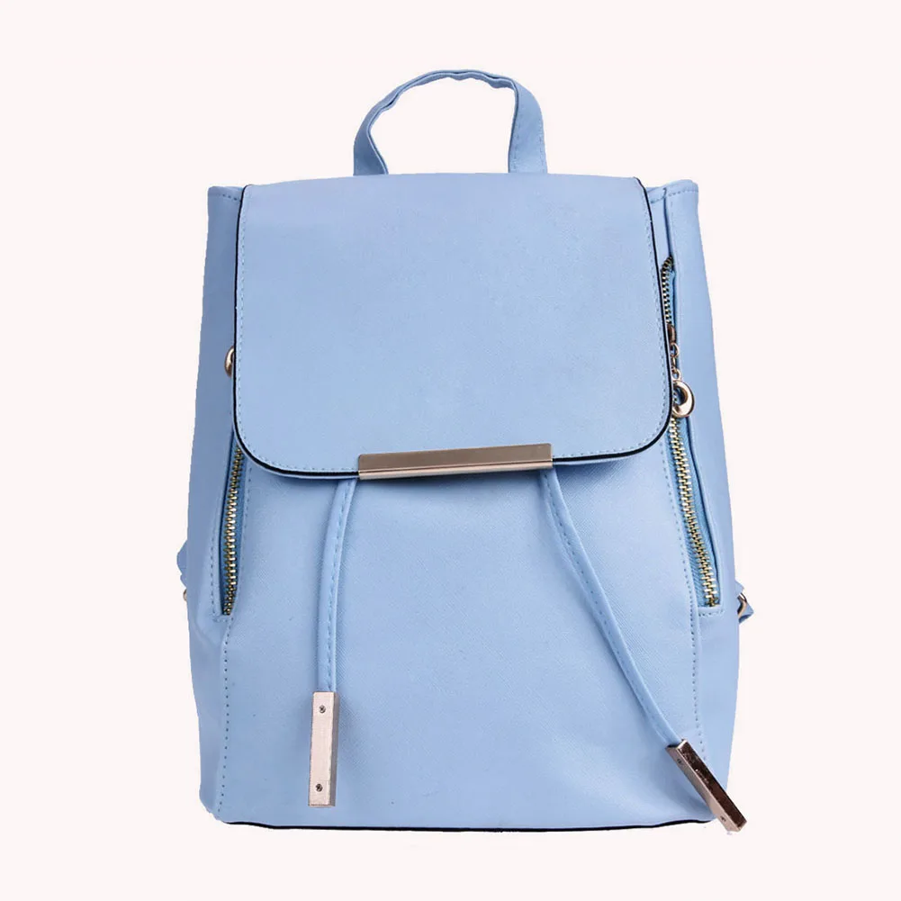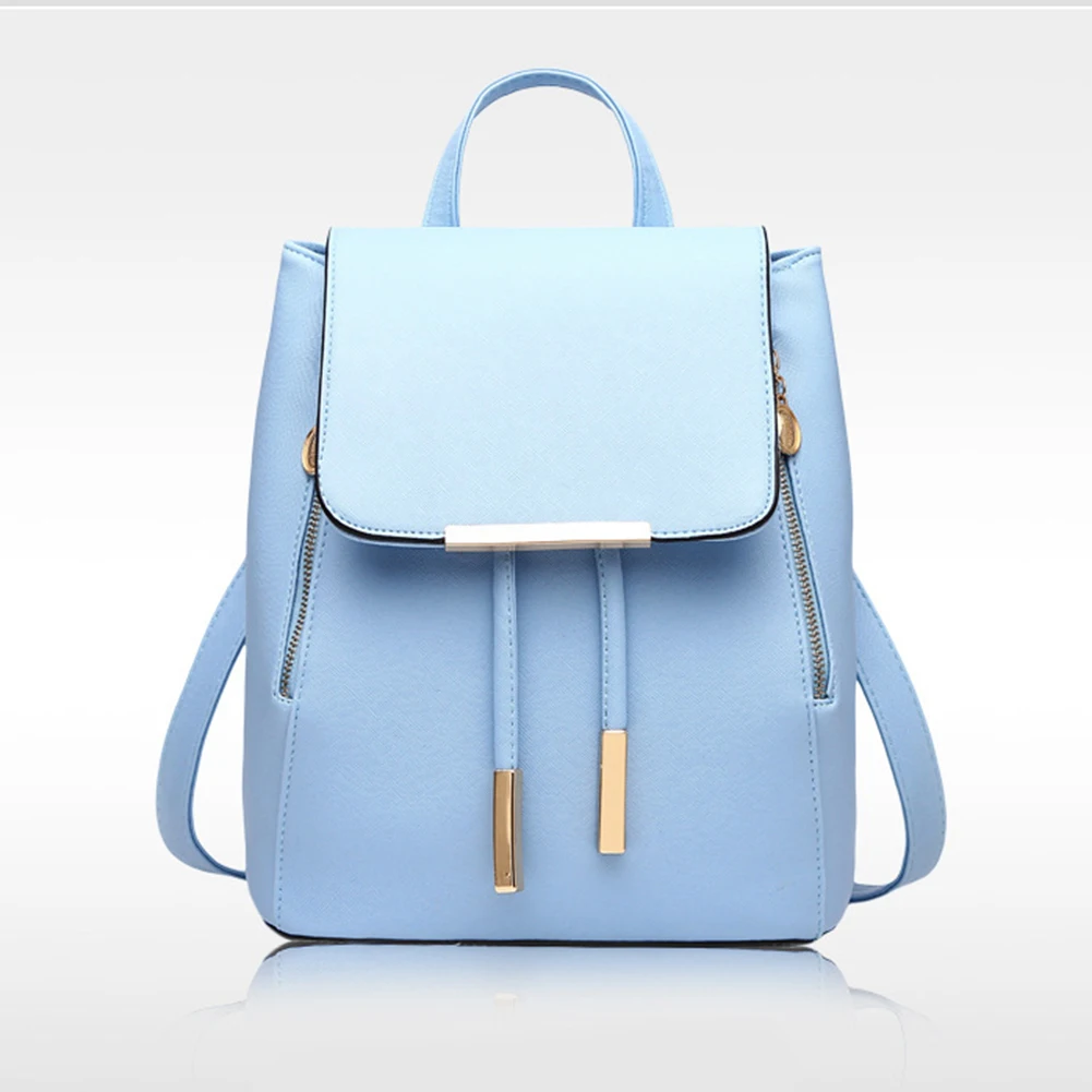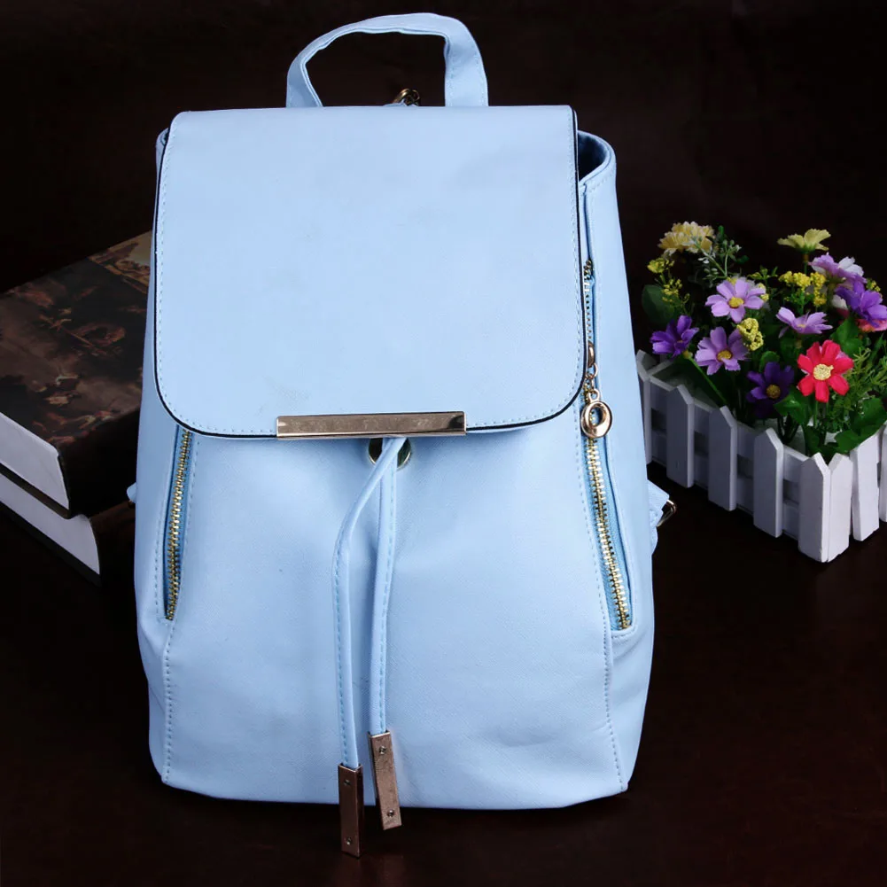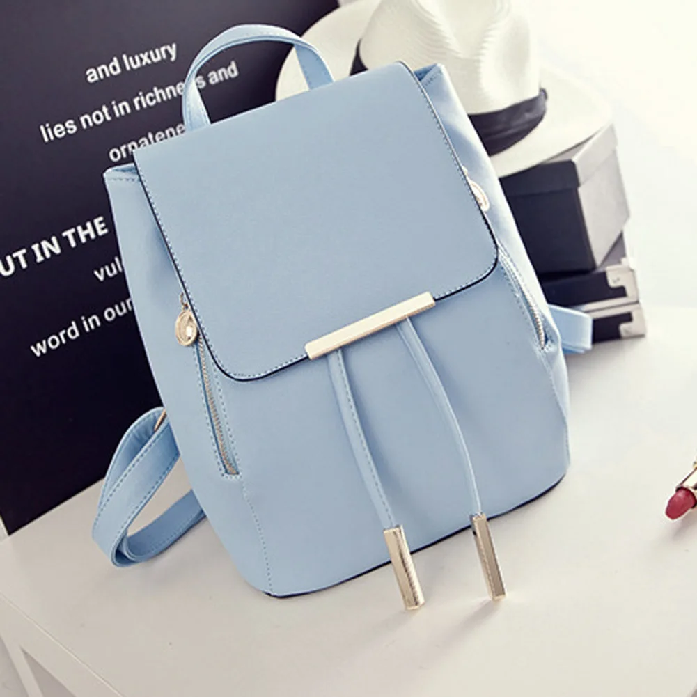 Женский рюкзак из искусственной кожи в стиле преппи, однотонный Повседневный женский рюкзак на шнурке, рюкзакСиний