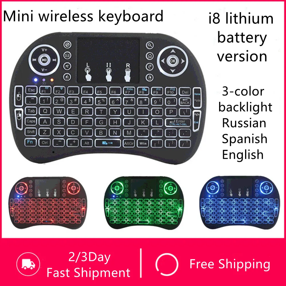 i8 Mini Wireless 3 Color Backlit Keyboard 2.4Ghz Spainsh English Russian Air Mouse For Smart Android TV Box X96 PC Laptop, Hot Sale Russian, Быстрая доставка