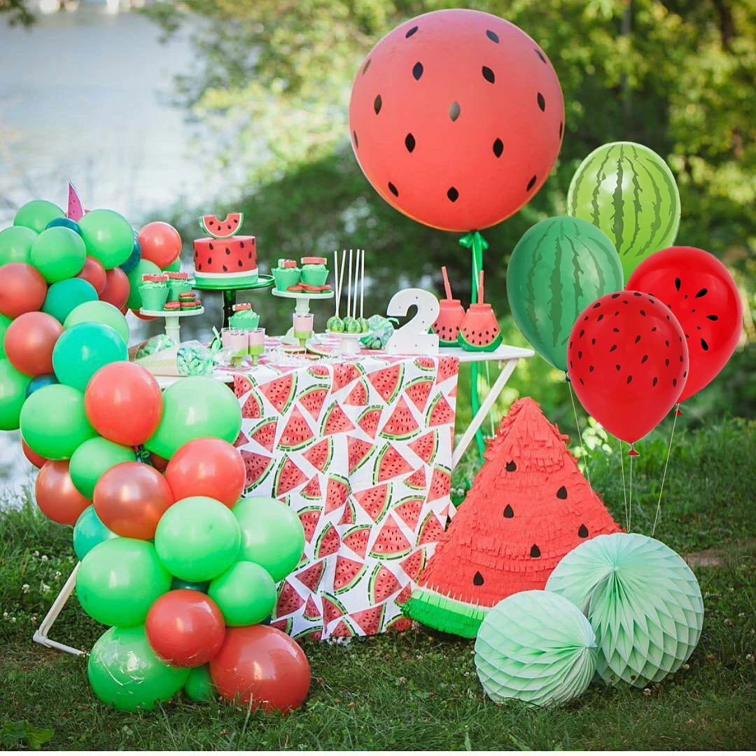 1 комплект, вечерние воздушные шары в форме арбуза, летние баннеры ...