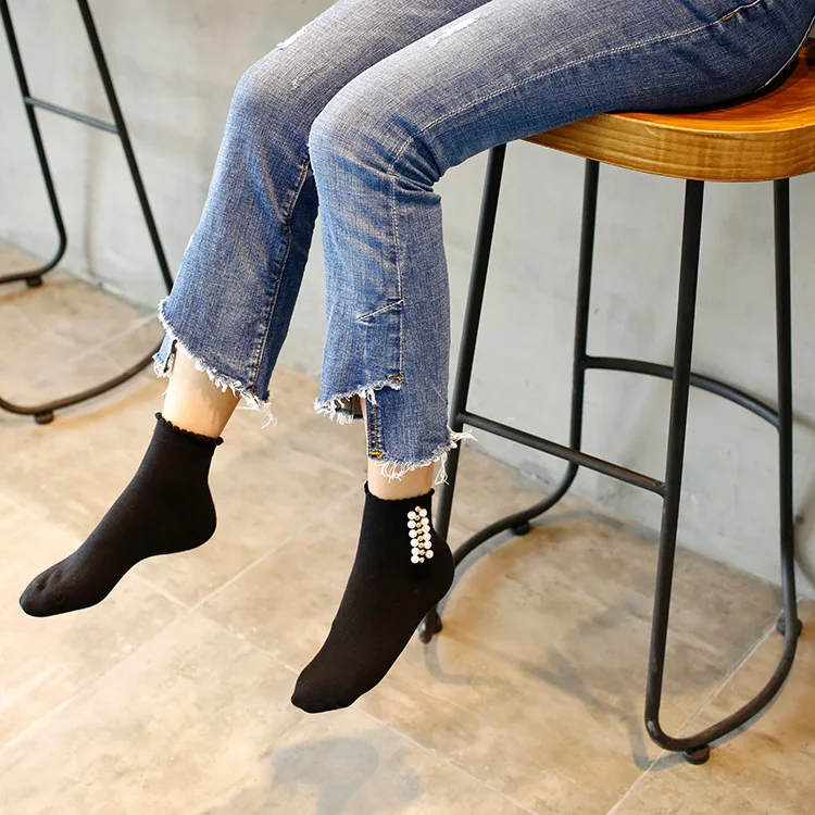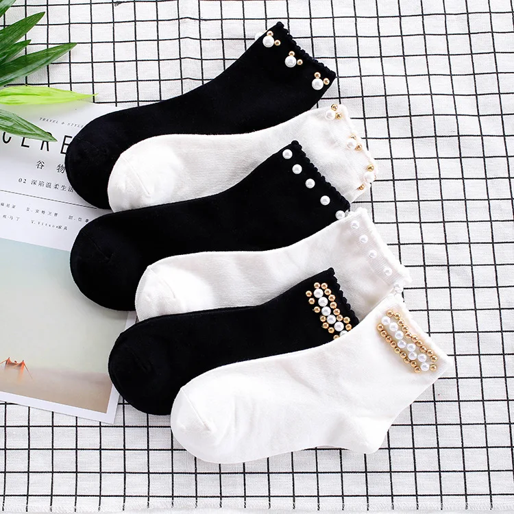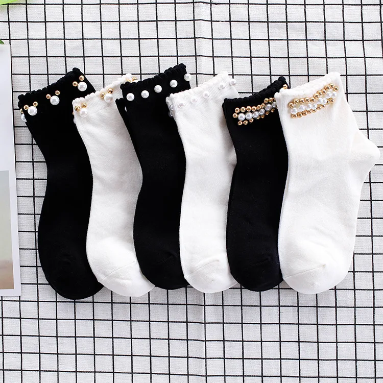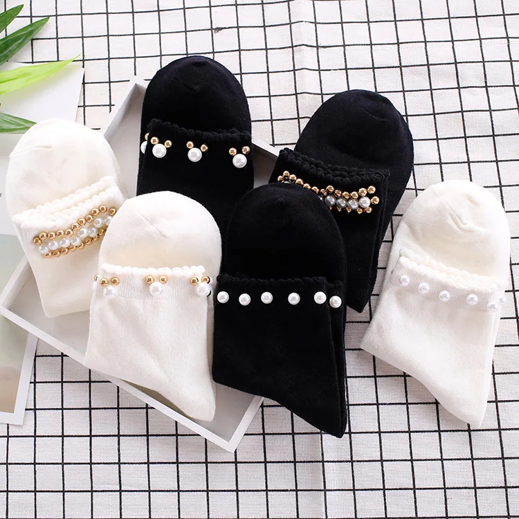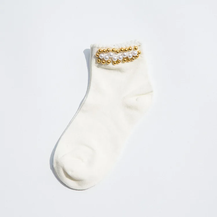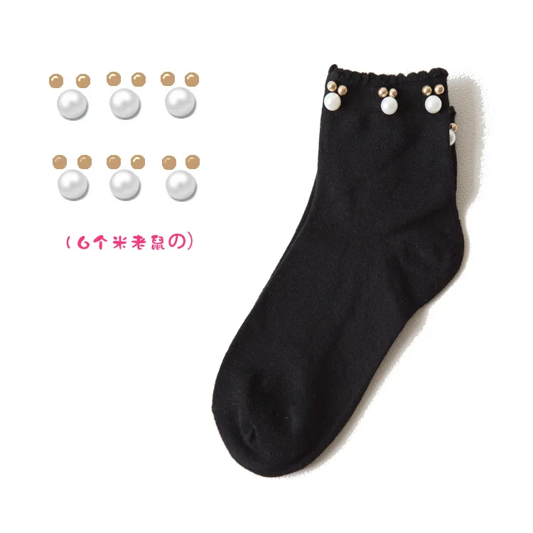 Бесплатная доставка, хлопковые носки с бусинами для девочек, милые короткие носки в стиле "Лолита"