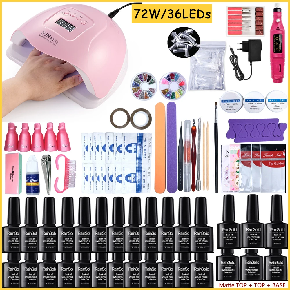 Полный маникюрный набор 168 Вт УФ светодиодный лампа для ногтей набор из 12 предметов быстрая с электрической машинкой для обработки ногтей набор инструментов для педикюра и ногтей