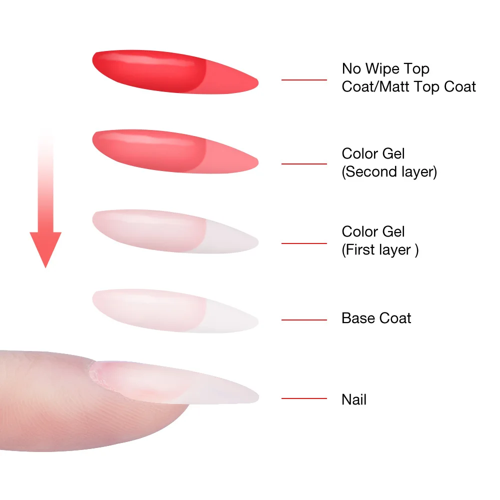 -4. Повторите 2-е тонкое покрытие отмачиваемого гель-лака на ногти. Высушите под светодиодный лампой в течение 30 секунд или УФ-светильник в течение 2 минут.