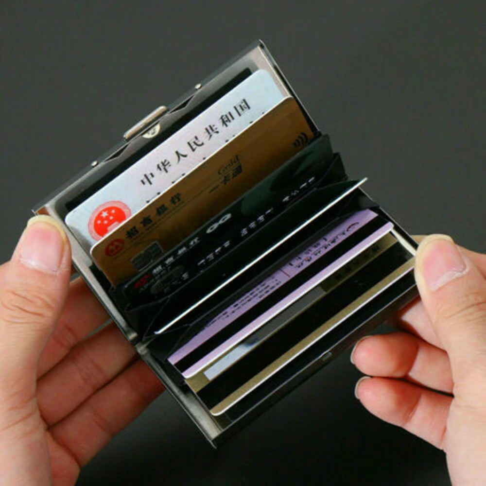 Тонкий бумажник блокирующий RFID алюминиевый из металла с защитой от сканирования, держатель для кредитных карт для мужчин, компактный деловой карбоновый мини-кошелек, бумажники, кошелек