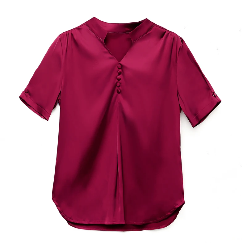 Женский топ с коротким рукавом, V-образным вырезом и пуговицами