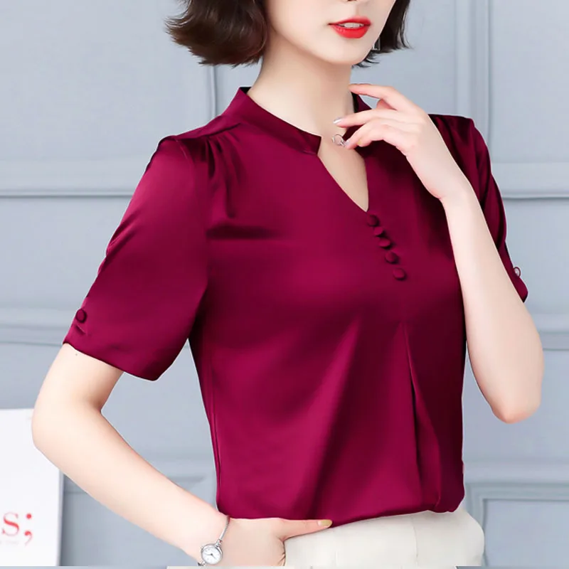 Женская блузка с коротким рукавом, повседневная, на пуговицах, с V-...