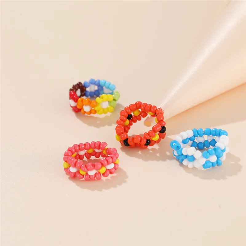 Кольцо с бусинами, модное женское кольцо ручной работы, разноцветное кольцо с рисовыми бусинами в виде улыбки, бабочки для девушек, ювелирные изделия, подарок 2021