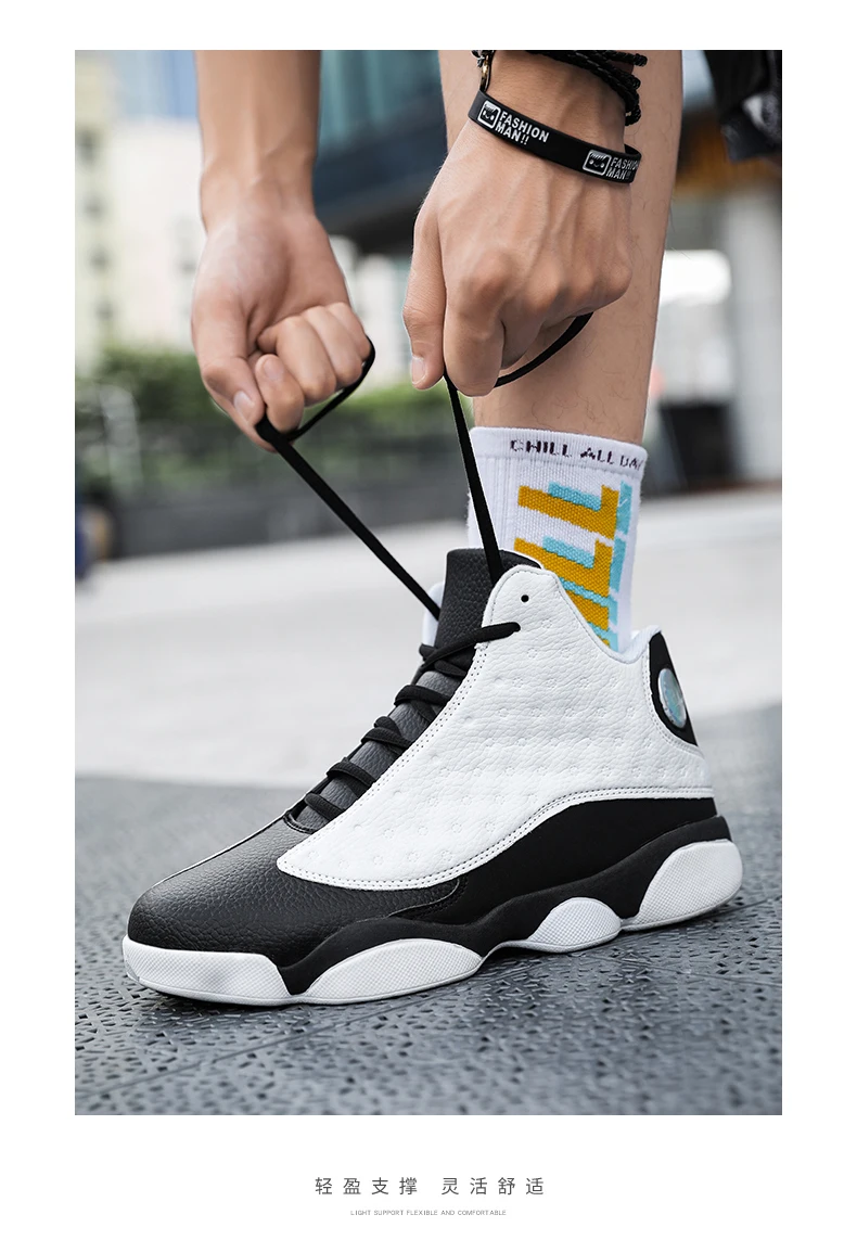 Дышащие мужские кожаные баскетбольные туфли высокие кроссовки унисе...