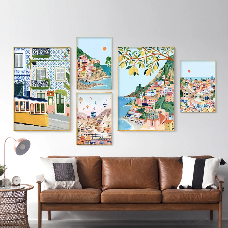 Плакат аниме путешествия по городу, с изображением Барселоны, Лиссабона, пейзажа, настенные картины для украшения дома, картины для интерьера
