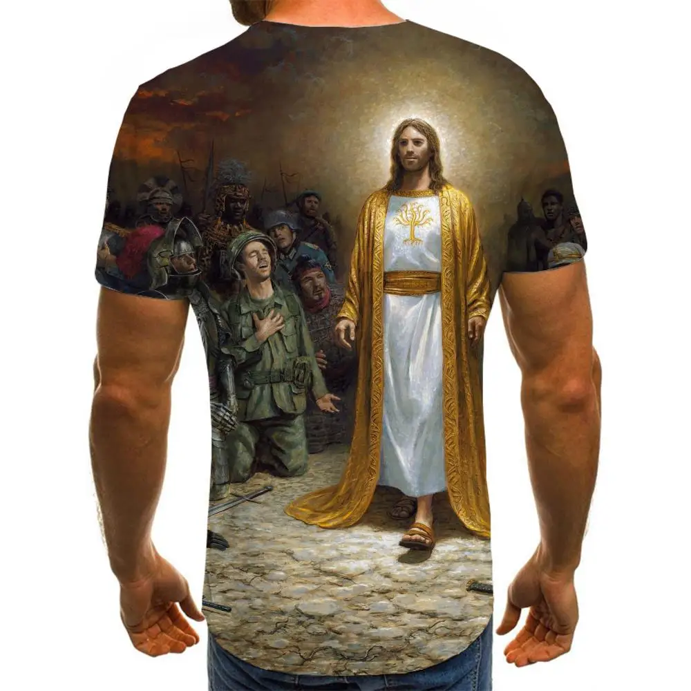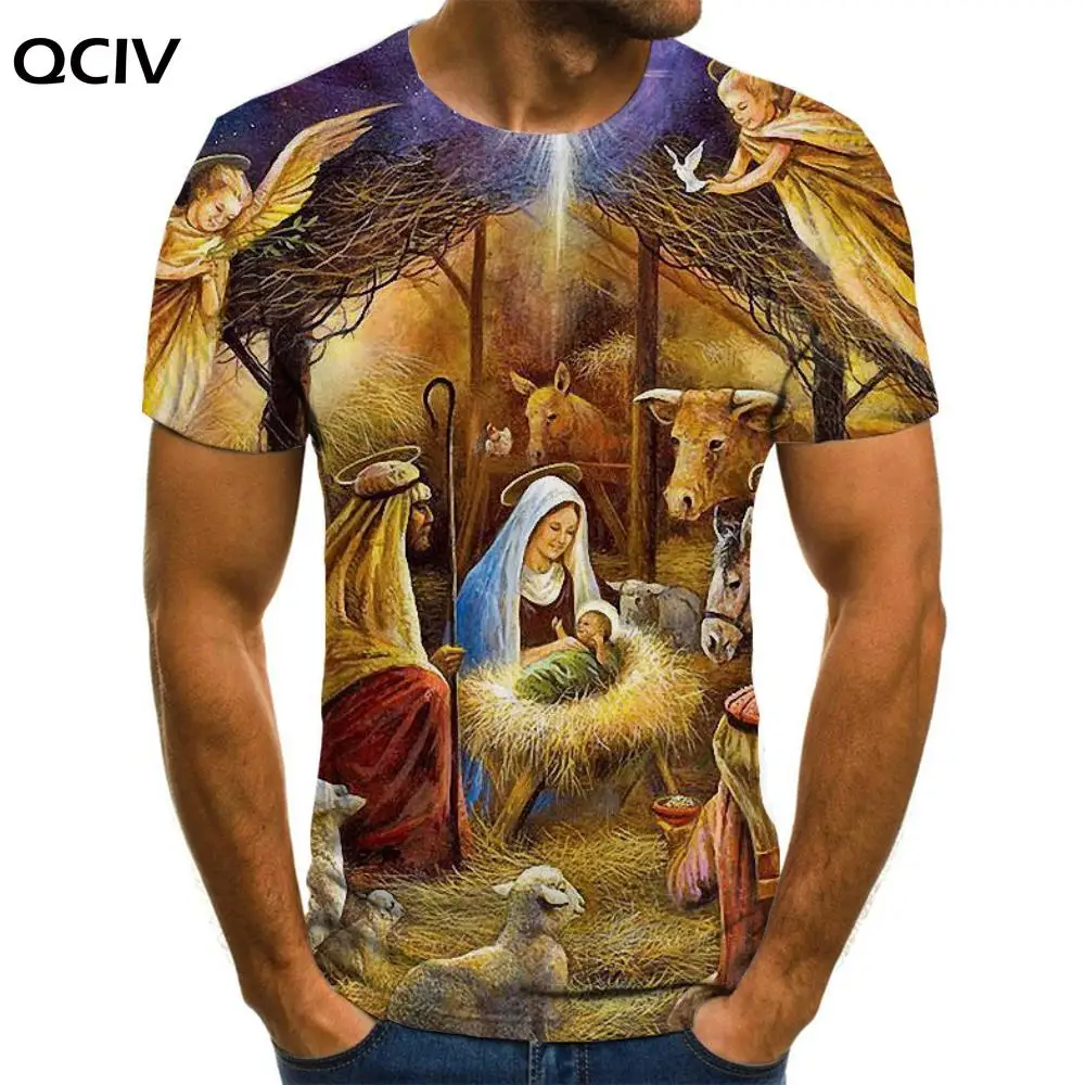 Футболка QCIV с изображением христианского Иисуса, мужская рубашка с принтом крови, одежда Аниме, мужская одежда с рисунком, футболки, новая уличная одежда с круглым вырезом