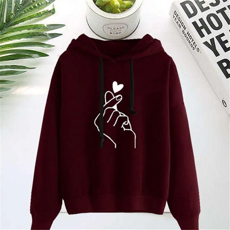 Женские толстовки с капюшоном и принтом сердца, Зимние Повседневные...
