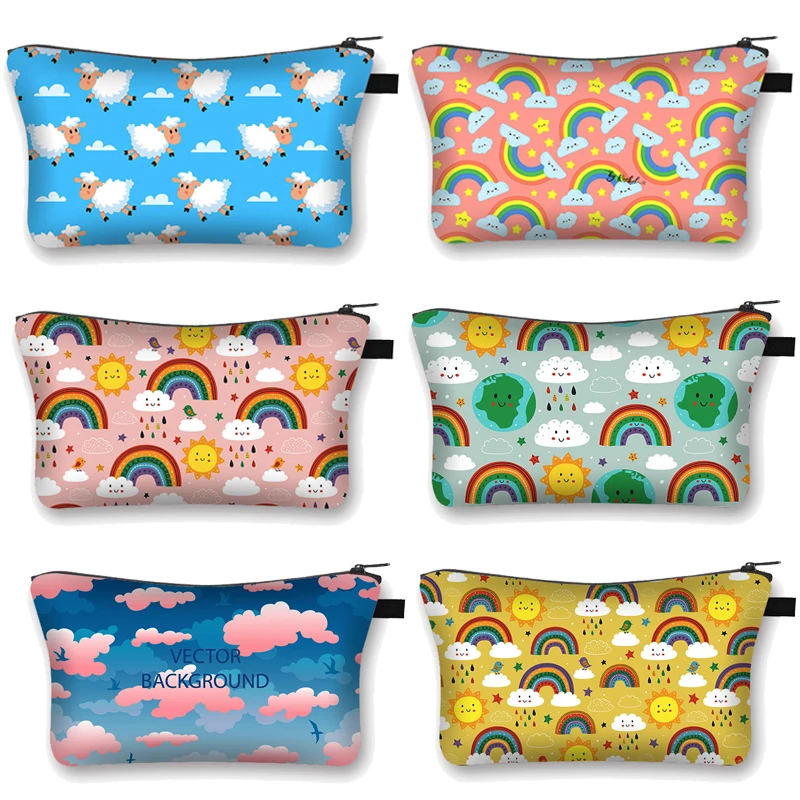 Милая косметичка с радужным облаком и принтом солнца, женские косметички, косметичка, косметичка для девочек-подростков, Женский органайзер для туалетных принадлежностей, клатч