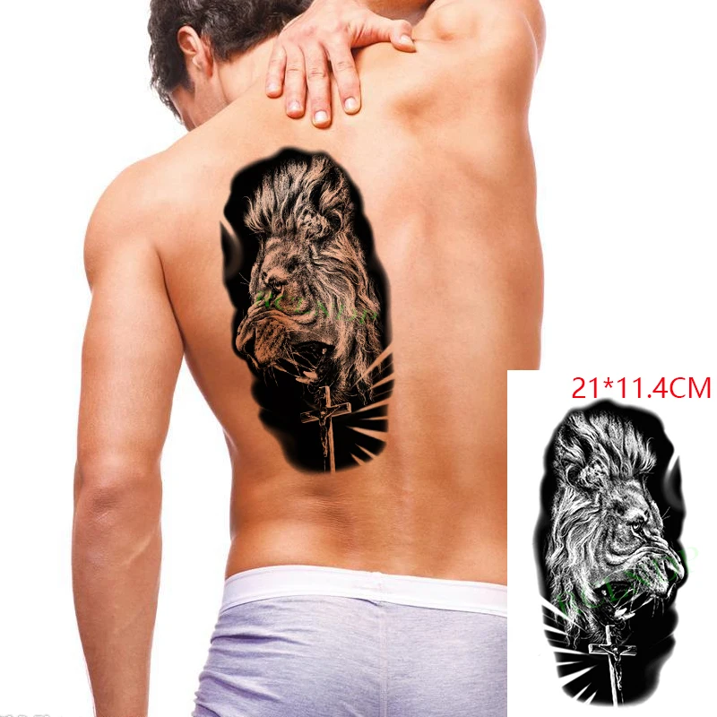 Водостойкие временные тату-наклейки, крест, голова льва, животное, молитвенный человек, ненастоящие тату, тату боди-арт для женщин и мужчин
