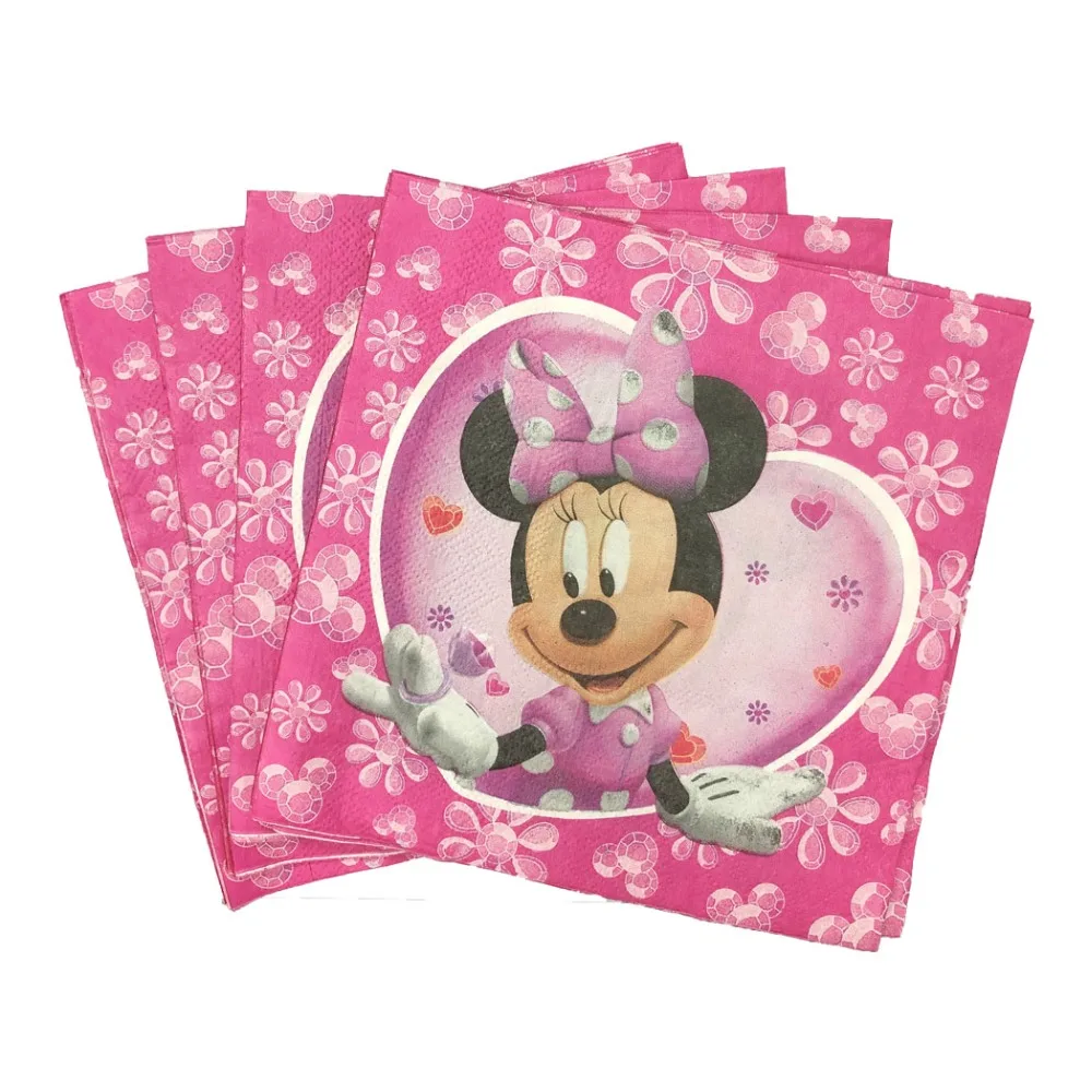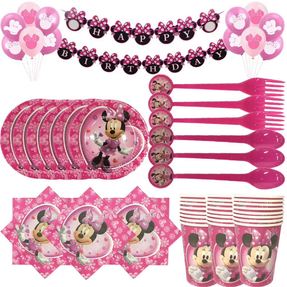 Дисней розовая тема Минни Мауса украшения для дня рождения салфетки тарелки чашки воздушные шары одноразовая посуда детские принадлежности для душа