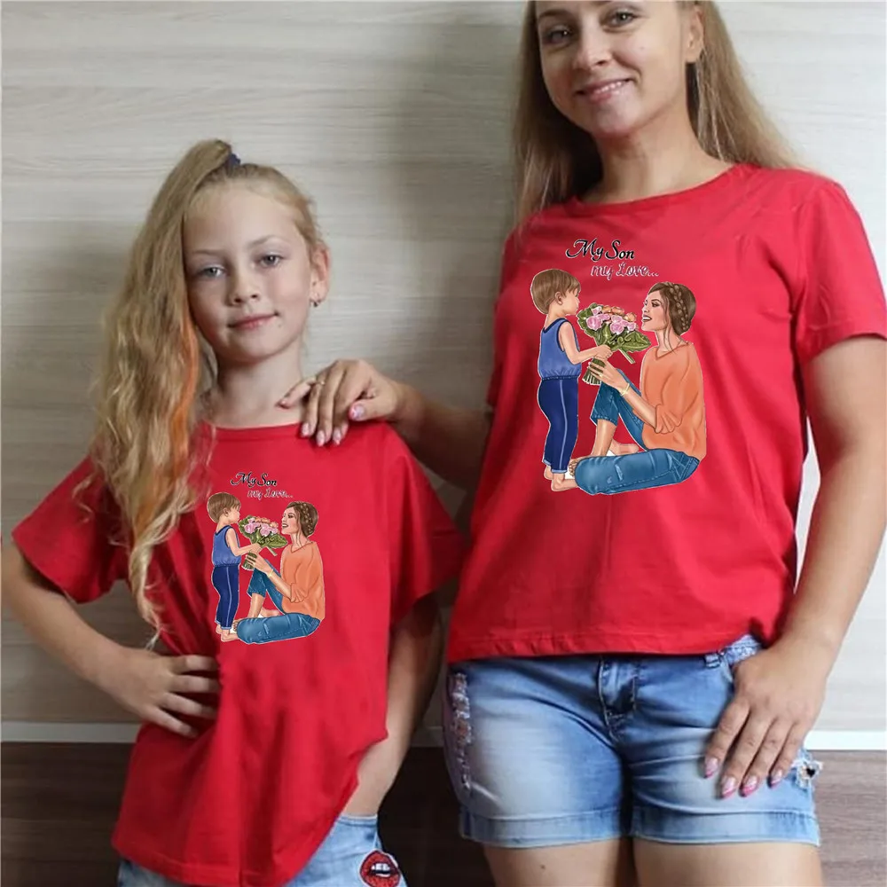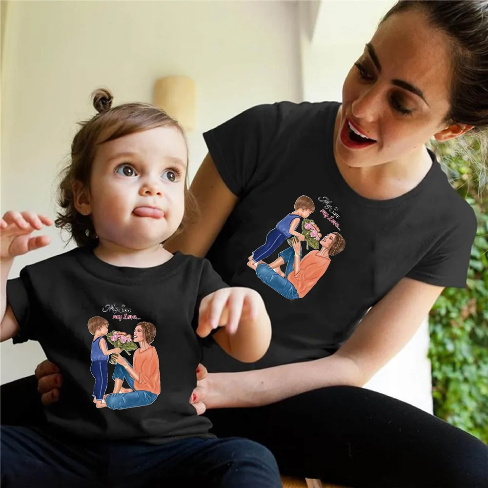 Одинаковые наряды для семьи, Одинаковая одежда для мамы и ребенка, футболка для мамы и сына, 100% хлопок
