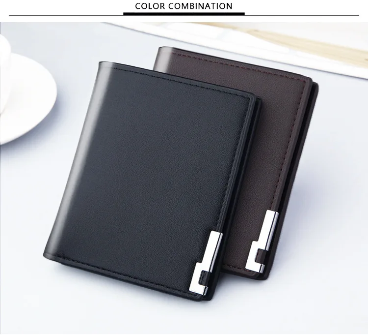 Мужской мягкий тонкий кошелек с железными краями, корейский молодежный Мужской горизонтальный кошелек, трендовый тонкий кошелек для мелочи