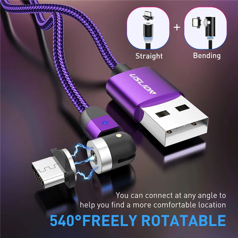 Вращающийся на 540 градусов Магнитный кабель USLION, магнитное зарядное устройство для быстрой зарядки, кабель Micro USB Type-C, шнур для iPhone 11, Xiaomi