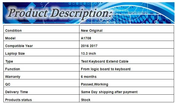 A1708 раскладной кабель клавиатуры для Macbook Retina 13,3 дюймов от материнской платы до клавиатуры для тестирования 2016 2017
