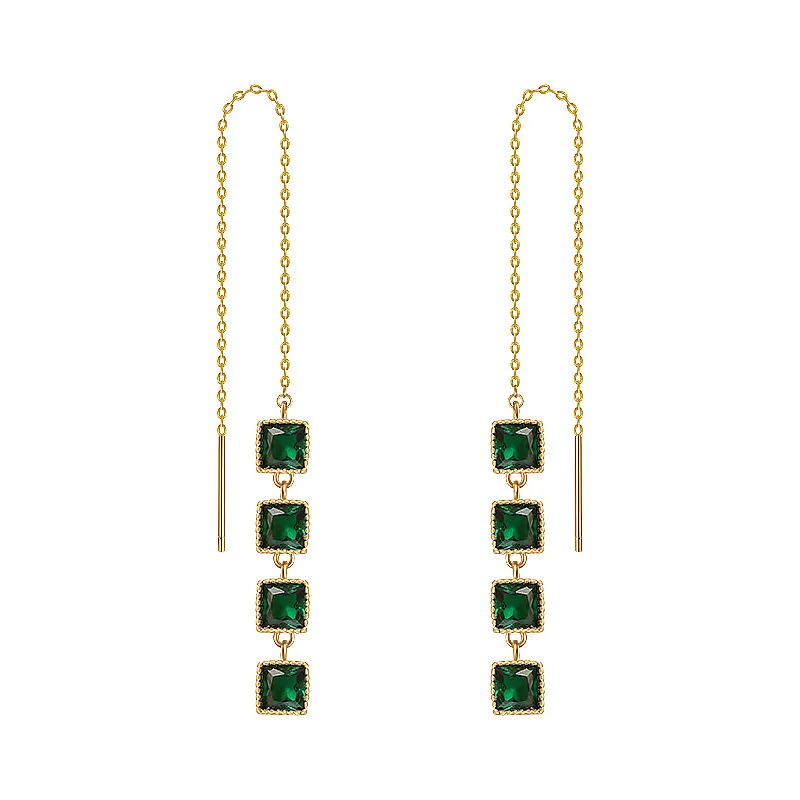 Новинка 2021, Роскошные зеленые квадратные серьги с кисточками и кр...
